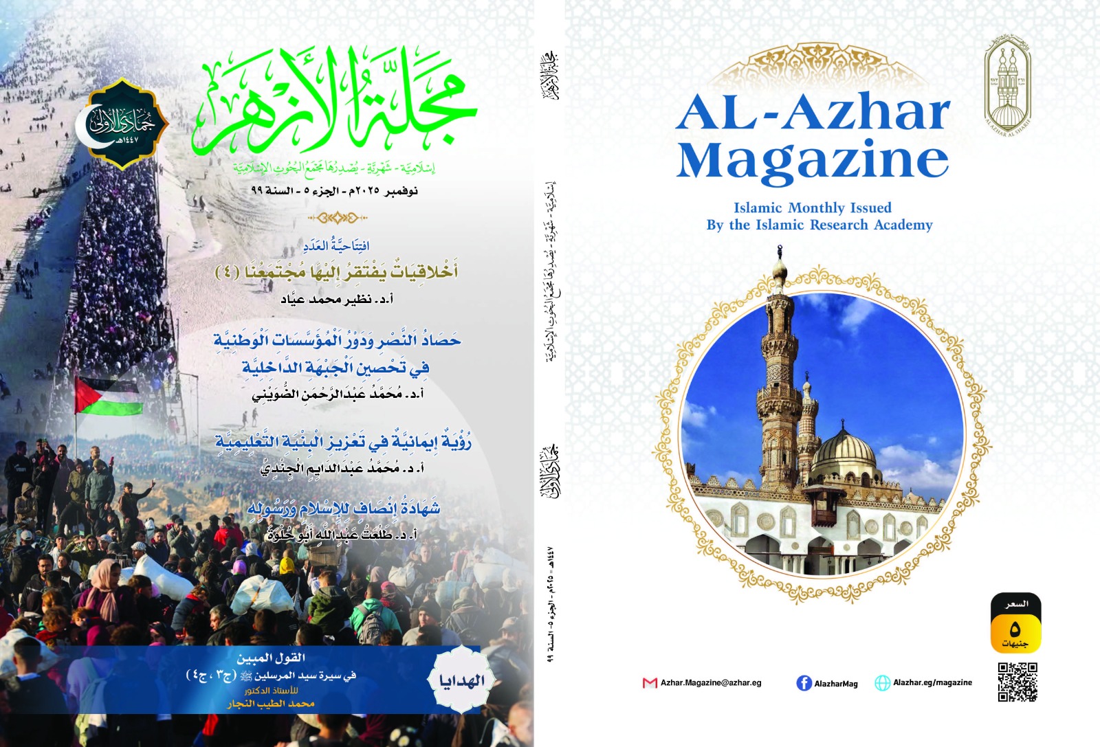 مِنْ جانبه، بيَّن فضيلة أ.د. نظير عيَّاد، مفتي الجمهوريَّة ورئيس تحرير مَجَلَّة الأزهر، أنَّ المَجَلَّة تُواصِل نهجها العِلمي في تقديم محتوًى فِكريٍّ متوازن يجمع بين الأصالة والمعاصرة، لافتًا إلى أنَّ مقالات هذا العدد تتناول موضوعاتٍ تمسُّ وعي الشباب، وتُبرز دَور العلماء في توجيه الفِكر العام نحو الاعتدال والفهم الصَّحيح للدِّين.