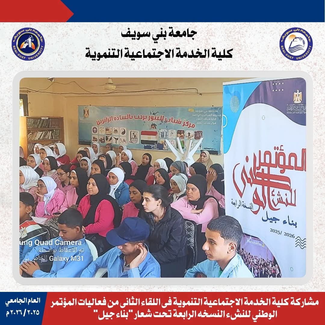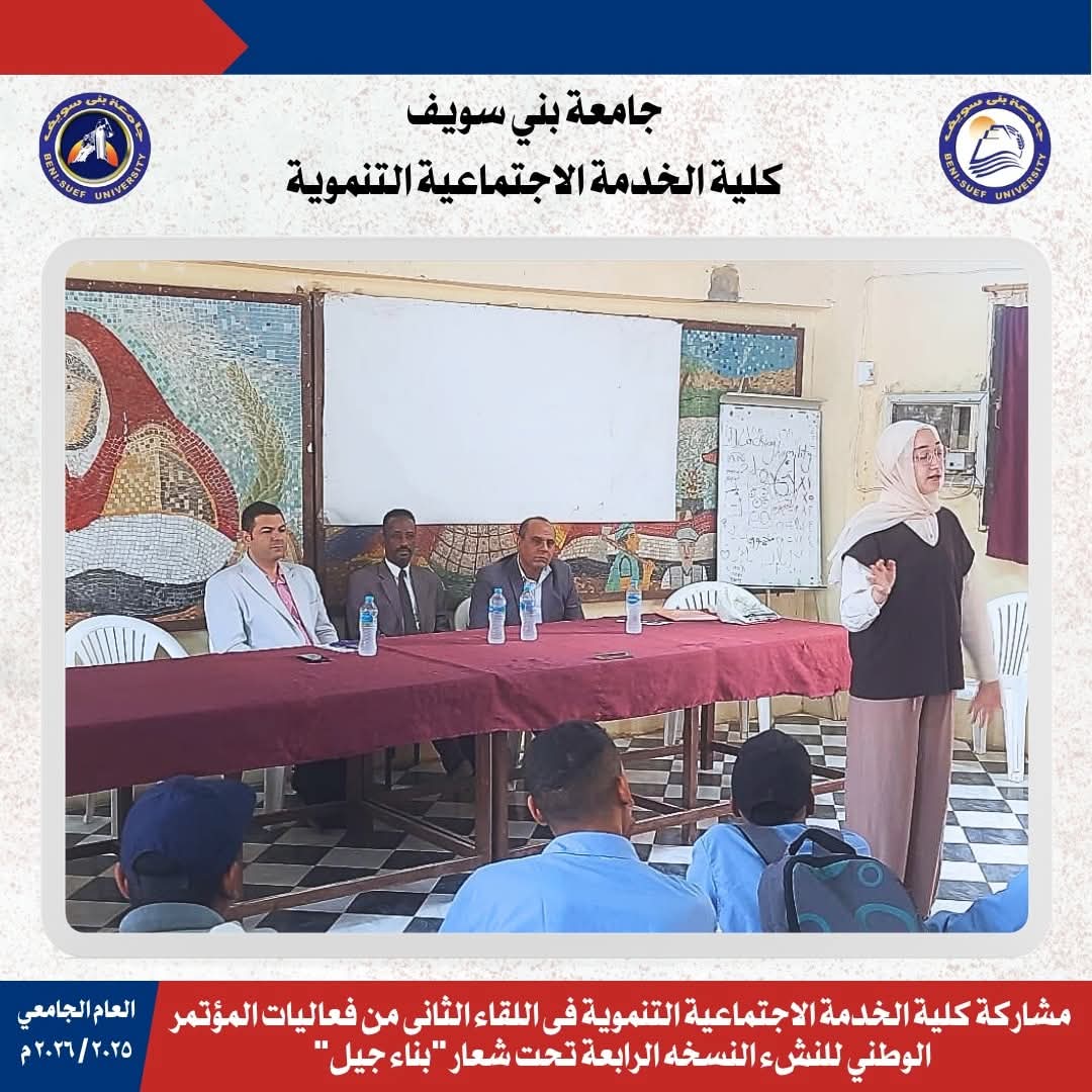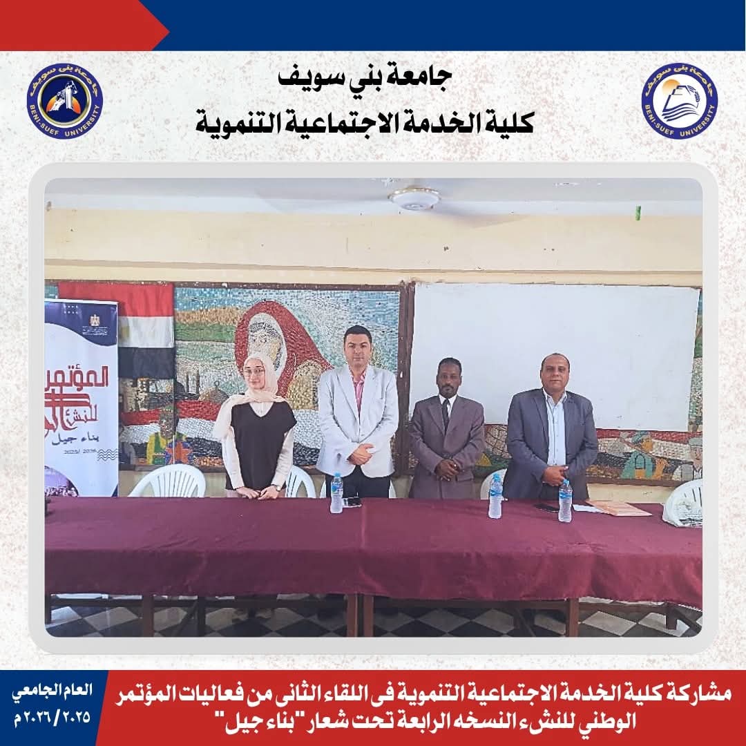 ممثلا عن كلية الخدمة الاجتماعية التنموية فى اللقاء الأول من فعاليات المؤتمر الوطني للنشء النسخه الرابعة اليوم الخميس تحت شعار "بناء جيل"