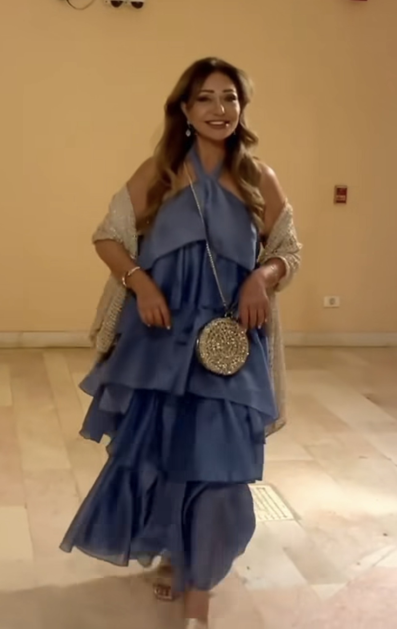 تألقت ليلي علوي في الصور بإطلالة أنيقة، حيث ارتدت فستان طويل ذا أكمام مكشوفة باللون الأزرق الفاتح ونسقت معه كاريجان باللون البيج.