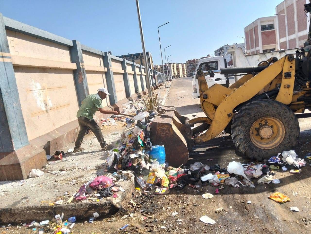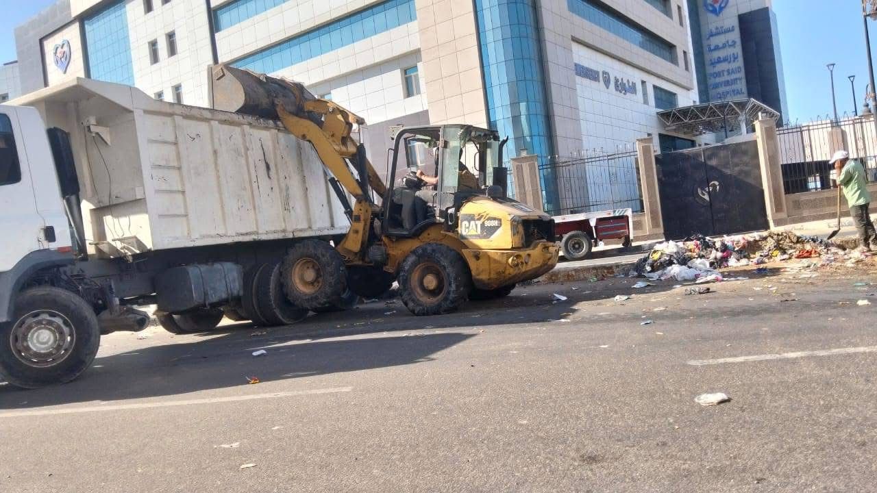 استمرار تكثيف أعمال النظافة العامة ورفع المخلفات بكافة أحياء بورسعيد