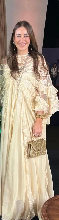 ـ فستان بسنت شوقي الذهبي من دار Maria Lucia Hohan: