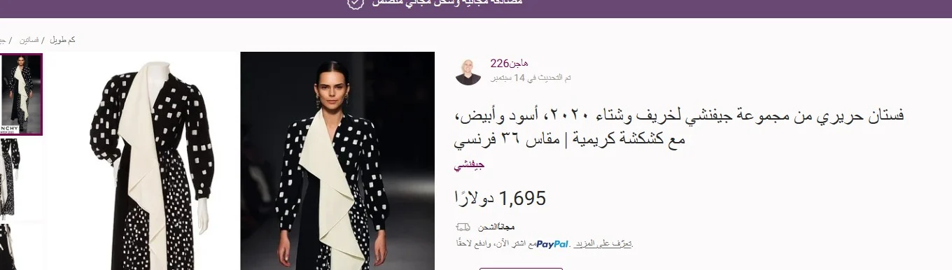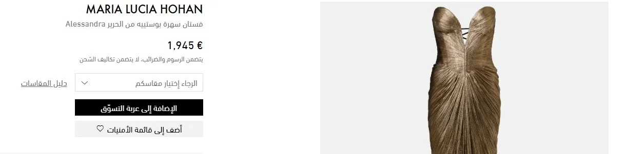 ويبلغ سعر فستان إلهام شاهين 1,695 دولارًا أمريكيًا.