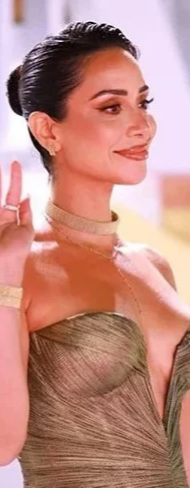 وأكملت بسنت إطلالتها بمجوهرات ذهبية وتسريحة شعر أنيقة، فيما يبلغ سعر الفستان الذهبي 1,945 يورو.