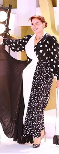 خطفت النجمة إلهام شاهين الأنظار بفستان يجمع بين اللونين الأسود والأبيض من دار الأزياء العالمية Givenchy من مجموعة خريف وشتاء 2020، يتميز بتصميم طويل وأكمام أنيقة وكشكشة بطول الفستان.