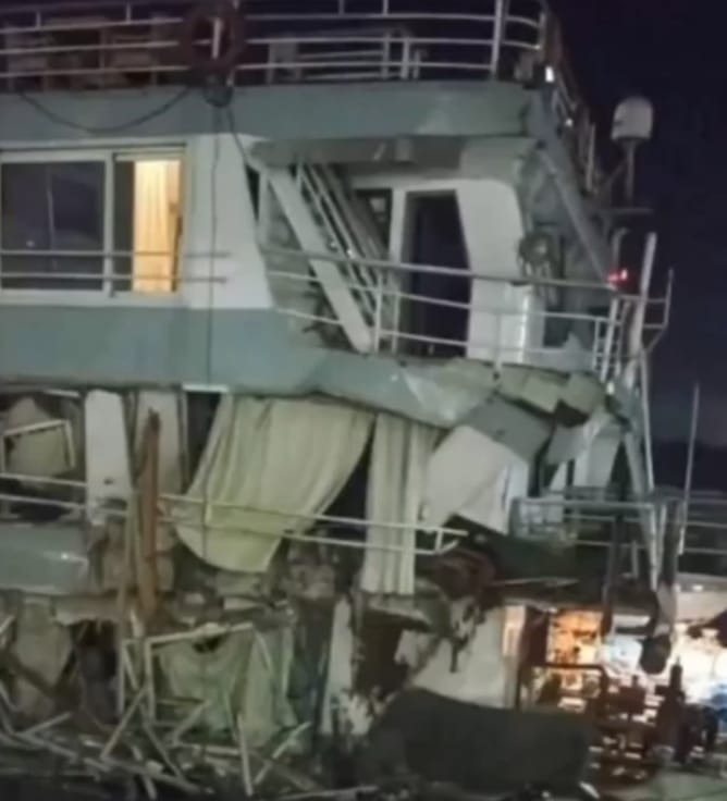 ننشر الصور الأولى لإصطدام باخرة بمحور كوبرى كلابشة شمال أسوان دون وقوع خسائر فى الأرواح أو إصابات ، والوضع مستقر .