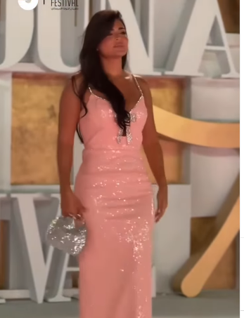 تألقت أسماء جلال على السجادة الحمراء بإطلالة مميزة، حيث ارتدت فستان طويل ذا أكمام مكشوفة واتسم التصميم باللون البينك المطرز بالكامل.