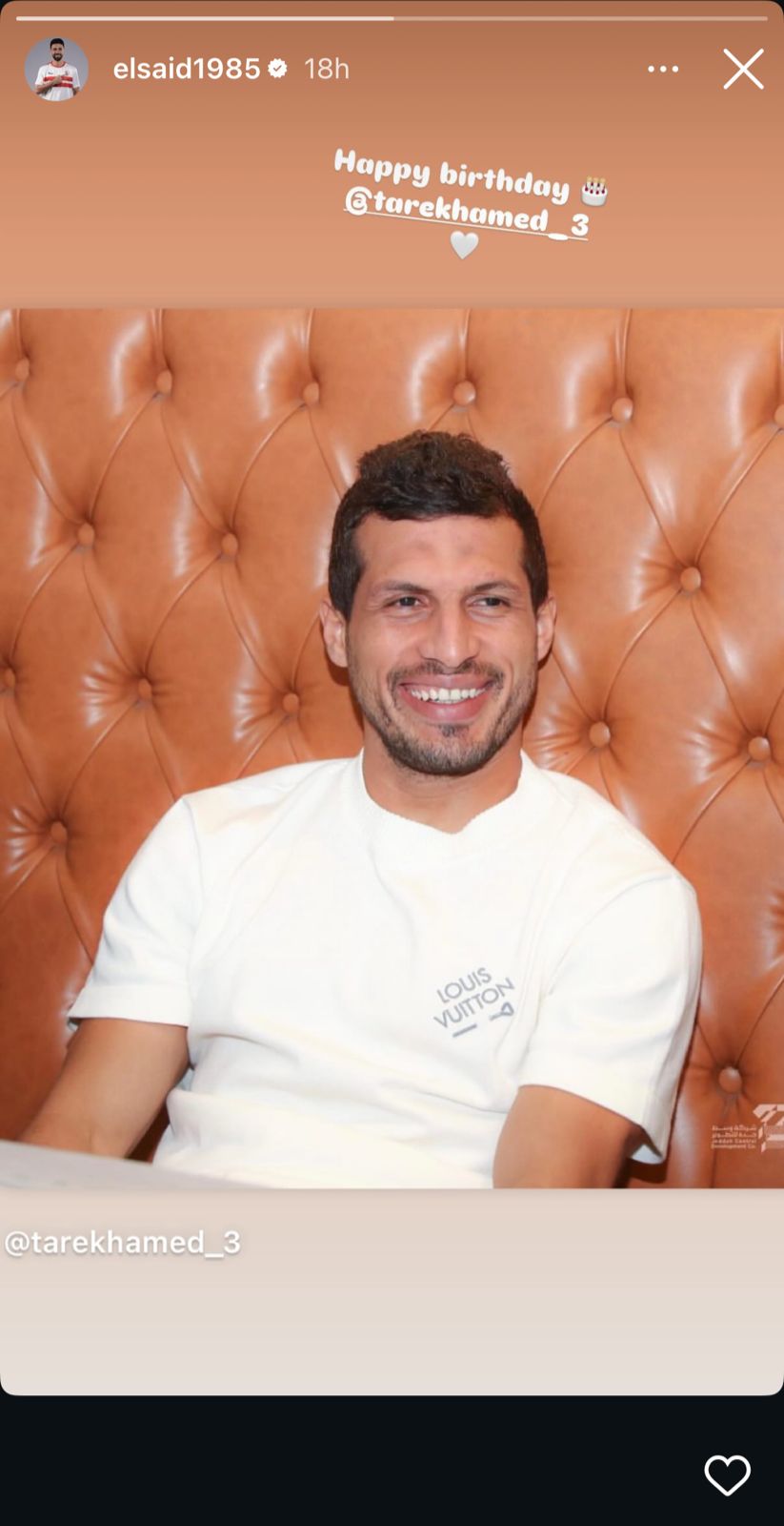 حرص عبد الله السعيد، لاعب نادي الزمالك على تهنئة طارق حامد، بمناسبة عيد ميلاده في أحدث ظهور عبر حسابه الشخصي انستجرام.