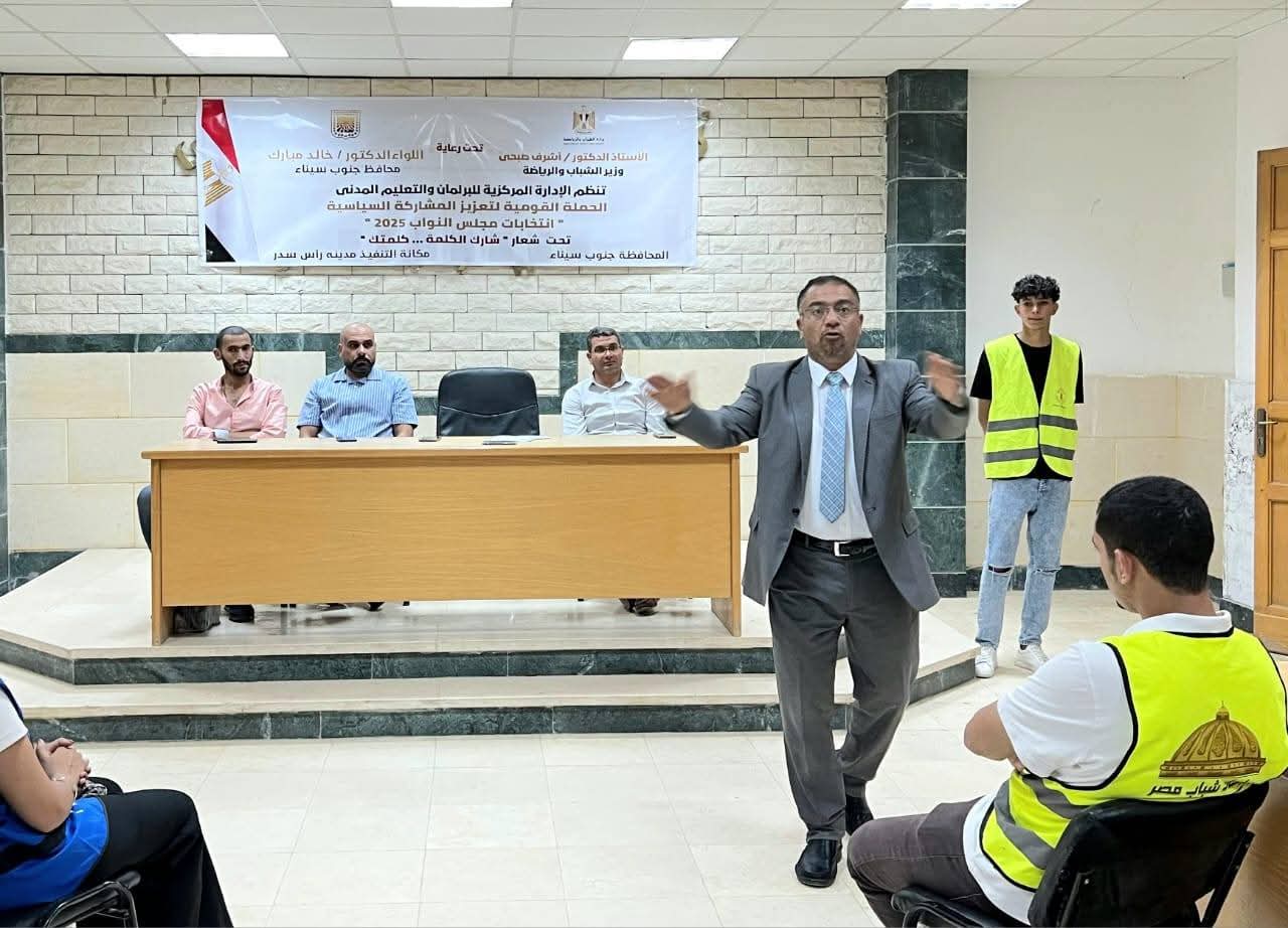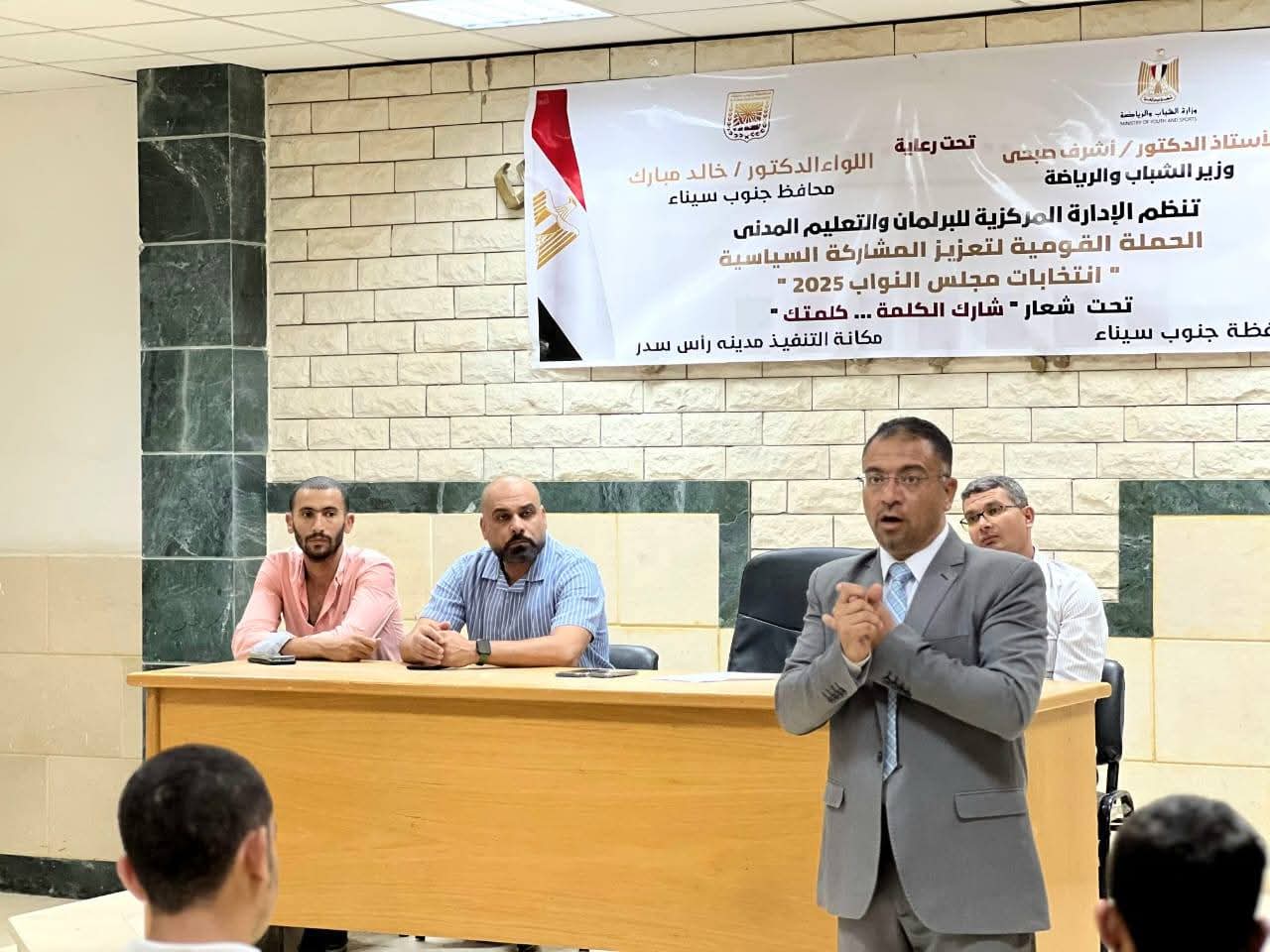 انطلقت فعاليات الحملة القومية لتعزيز المشاركة السياسية تحت شعار « شارك... الكلمة كلمتك » بمحافظة جنوب سيناء، وتحديداً بمركز التنمية الشبابية بمدينة رأس سدر، وذلك في إطار استعدادات وزارة الشباب والرياضة لانطلاق انتخابات مجلس النواب المصري المقبلة عام 2025.