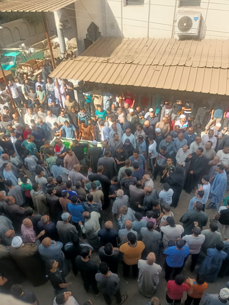 وأدى الأهالي صلاة الجنازة على الشاب من المسجد الكبير بالقرية، وتم تشييع الجثمان إلى مثواه الأخير في مقابر الأسرة بالقرية.