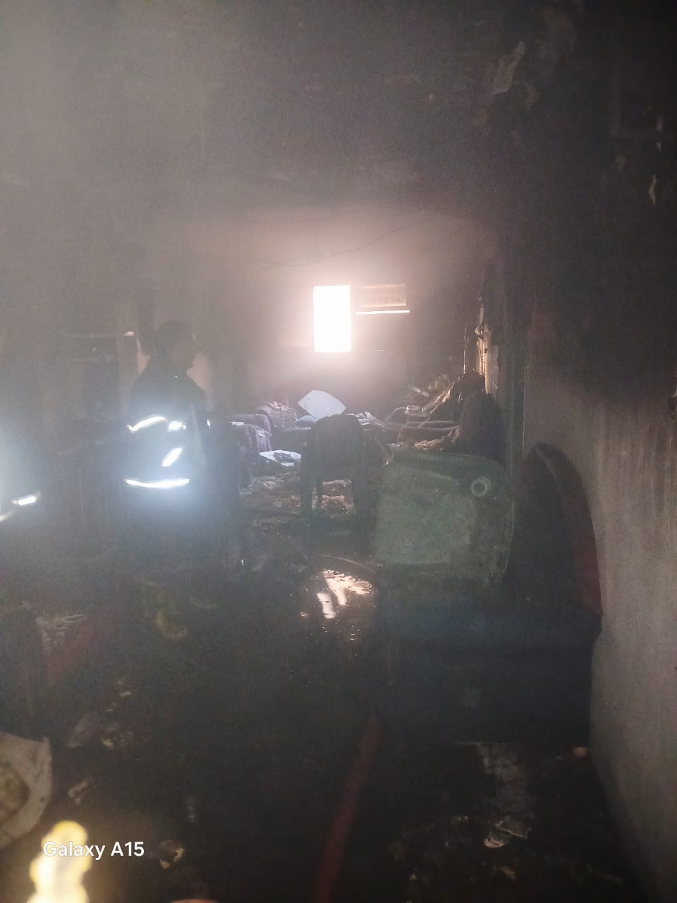 انتقل إلى موقع الحادث ضباط القسم والإسعاف وقوات الحماية المدنية والإطفاء وتبين نشوب حريق في شقة سكنية ملك " كاملة . ع . أ " 61 عاما، أسفر الحريق عن إصابة " سمر . م . ع "32 عاما باختناق وتم نقلها إلى مستشفى الإيمان العام والتهمت النيران محتويات الشقة .