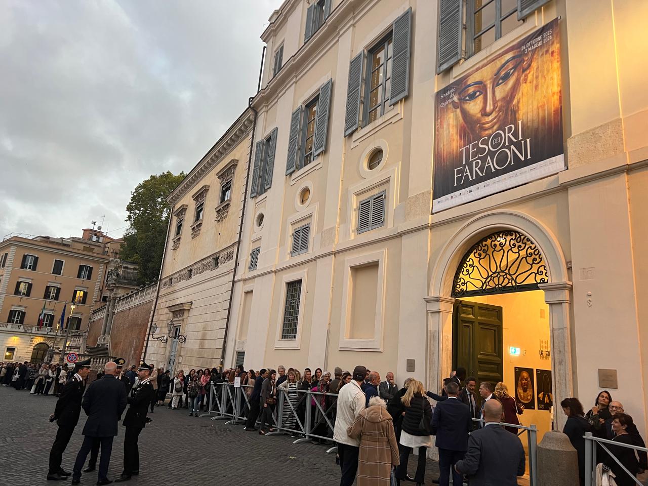 يشهد معرض "كنوز الفراعنة"، المُقام حالياً بقاعة Scuderie del Quirinale بالعاصمة الإيطالية روما، إقبالًا جماهيريًا واسعًا منذ أن قام السيد سيرجيو ماتاريلا رئيس جمهورية إيطاليا بافتتاحه رسمياً قبل يومين، والسيد شريف فتحي وزير السياحة والآثار المصري، والسيد أليساندرو جولي وزير الثقافة الإيطالي، د. محمد إسماعيل خالد الأمين العام للمجلس الأعلى للآثار، حيث توافدت آلاف الزائرين الذين اصطفوا في طوابير طويلة منذ الساعات الأولى من الصباح للاستمتاع بروائع الحضارة المصرية القديمة.