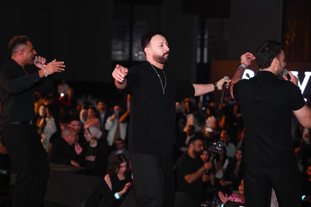 وأشعل الثلاثي ميدو وفهمي وشامي خشبة المسرح وسط بأغانيهم الرومانسية المميزة منها "نجمة معدية" ، " مش حلوة بس" ، "فاطومة" ،"قولي لو كنت مكاني" .. بالاضافة إلى أغنيتهم الجديدة "يا قلبي" وغيرها ممن قدموها بمشاركة dancers أضفت المزيد من آجواء الإثارة والغموض.
