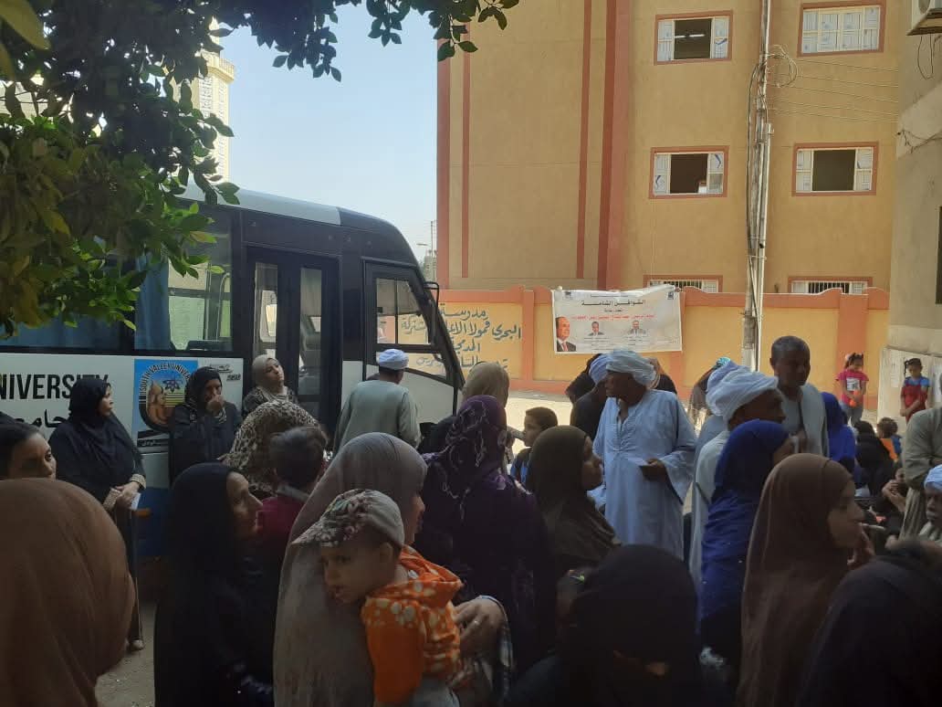 القافلة الأولى بقرية عزبة جرمون بقنا، قدمت خدماتها الطبية، وصرف العلاج المجاني إلى ٩٨٩ حالة في كافة التخصصات، بجانب إحالة بعض الحالات للمستشفى الجامعي.