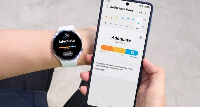 أعلنت شركة سامسونج، عن إطلاق ميزة جديدة تحمل اسم مؤشر مضادات الأكسدة في ساعتها الذكية Galaxy Watch 8، والتي تتيح للمستخدمين قياس مستويات الكاروتينويد في البشرة.