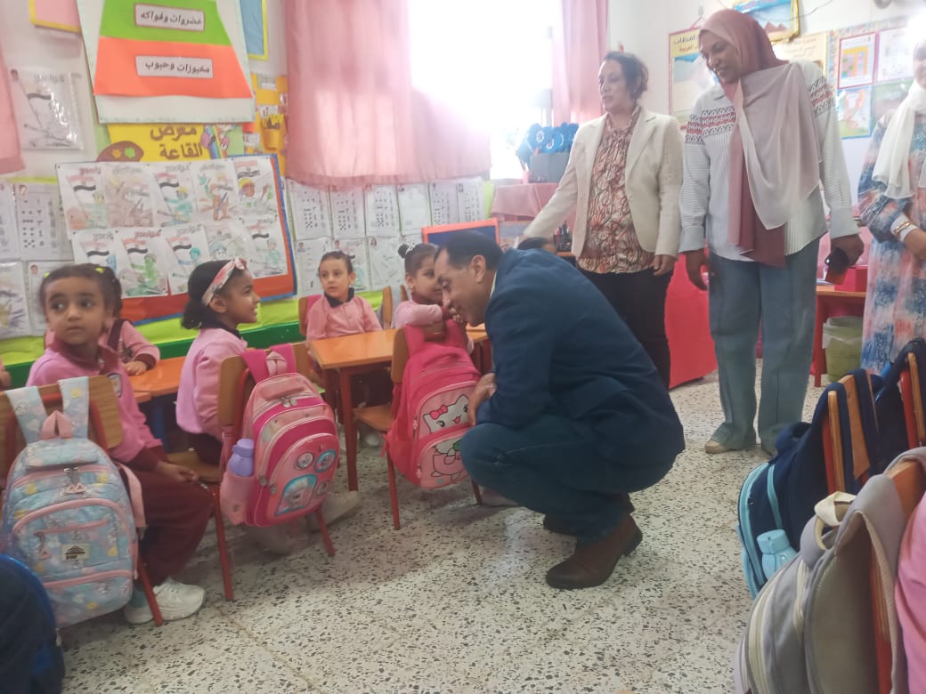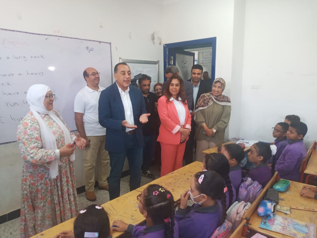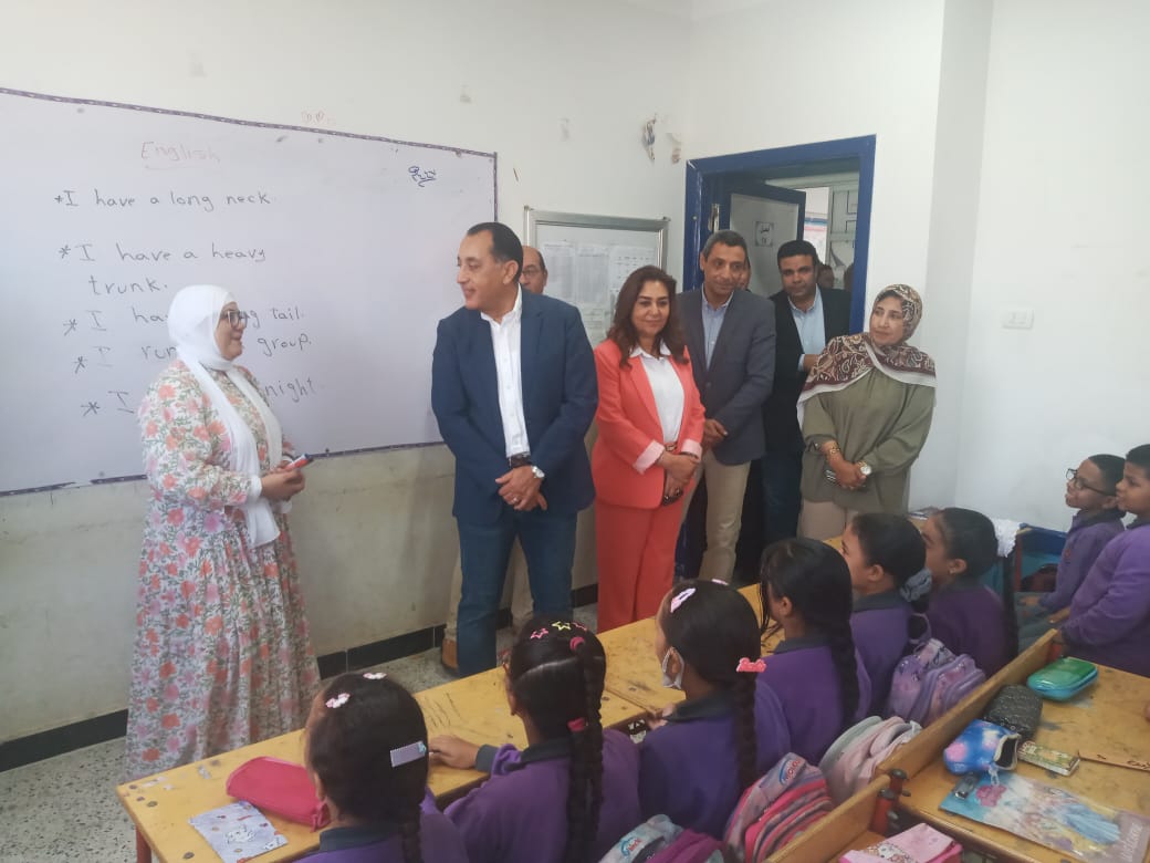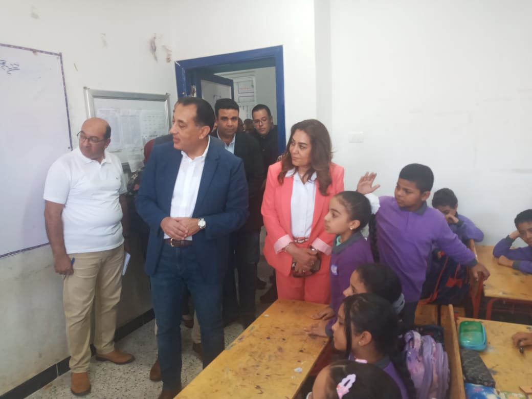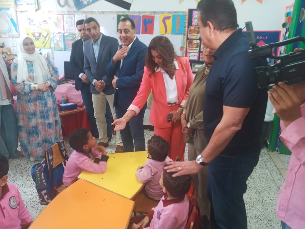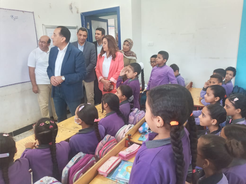 وتفقد مدبولي فصول المدرسة واجري حوار مع مدرسي المدرسة والأطفال وتسأل عن عدد الطلاب داخل الفصول و استلامهم للكتب المدرسية وإعداد الغياب في الفصول .