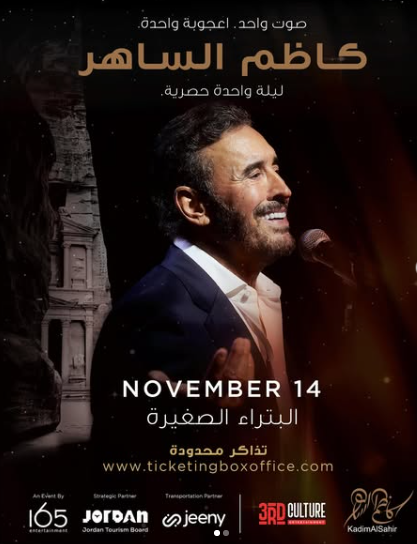 يستعد الفنان كاظم الساهر، لإحياء حفل غنائي في مدينة البتراء بالمملكة الأردنية الهاشمية، يوم 14 نوفمبر المقبل، ضمن سلسلة حفلاته الشتوية.