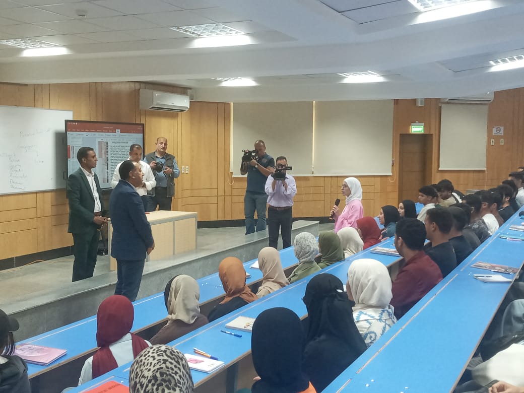 وطلب مدبولي أن يستمع من طلاب الجامعة عن طموحتهم ومستقبلهم العلمي وأكد الطلاب أن يختارون دراسة تفيدهم في المستقبل في العمل .