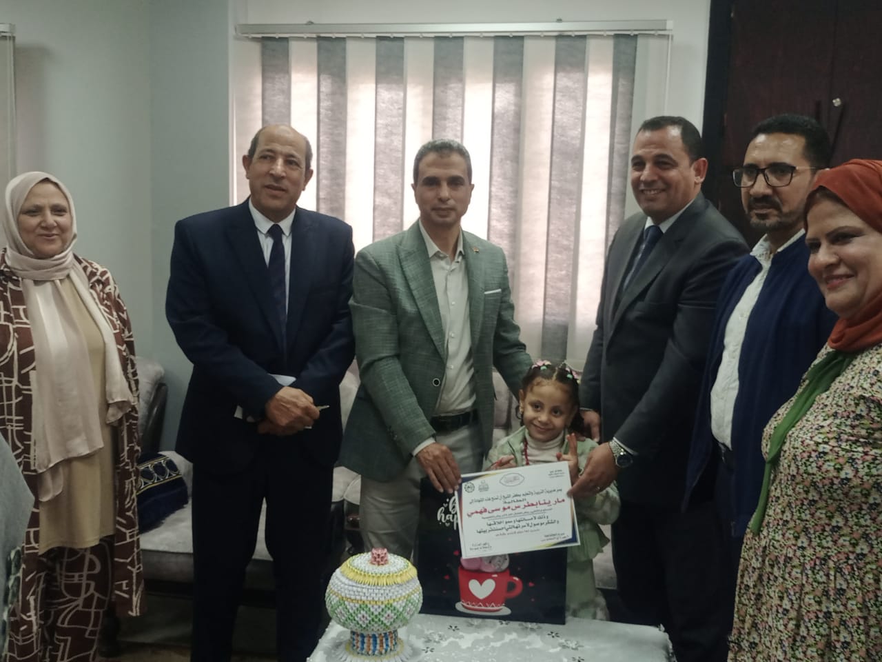 جاء ذلك بحضور ولي أمر التلميذة ووالدتها وهالة النواصرة، مدير عام الشئون التنفيذية والدكتور السعيد طنطاوي، مستشار التعليم بالمديرية ومحمد طه الزهيري، مدير إدارة الرياض التعليمية ومديرة المدرسة.