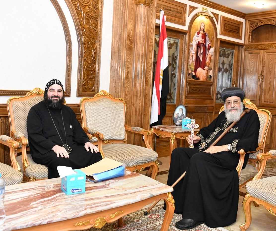 حيث استقبل قداسته الراهب القمص إيرينيئوس البراموسي، النائب البابوي للكنيسة القبطية بدولة قبرص، الذي قدم لقداسته تقريرًا عن الخدمة هناك.