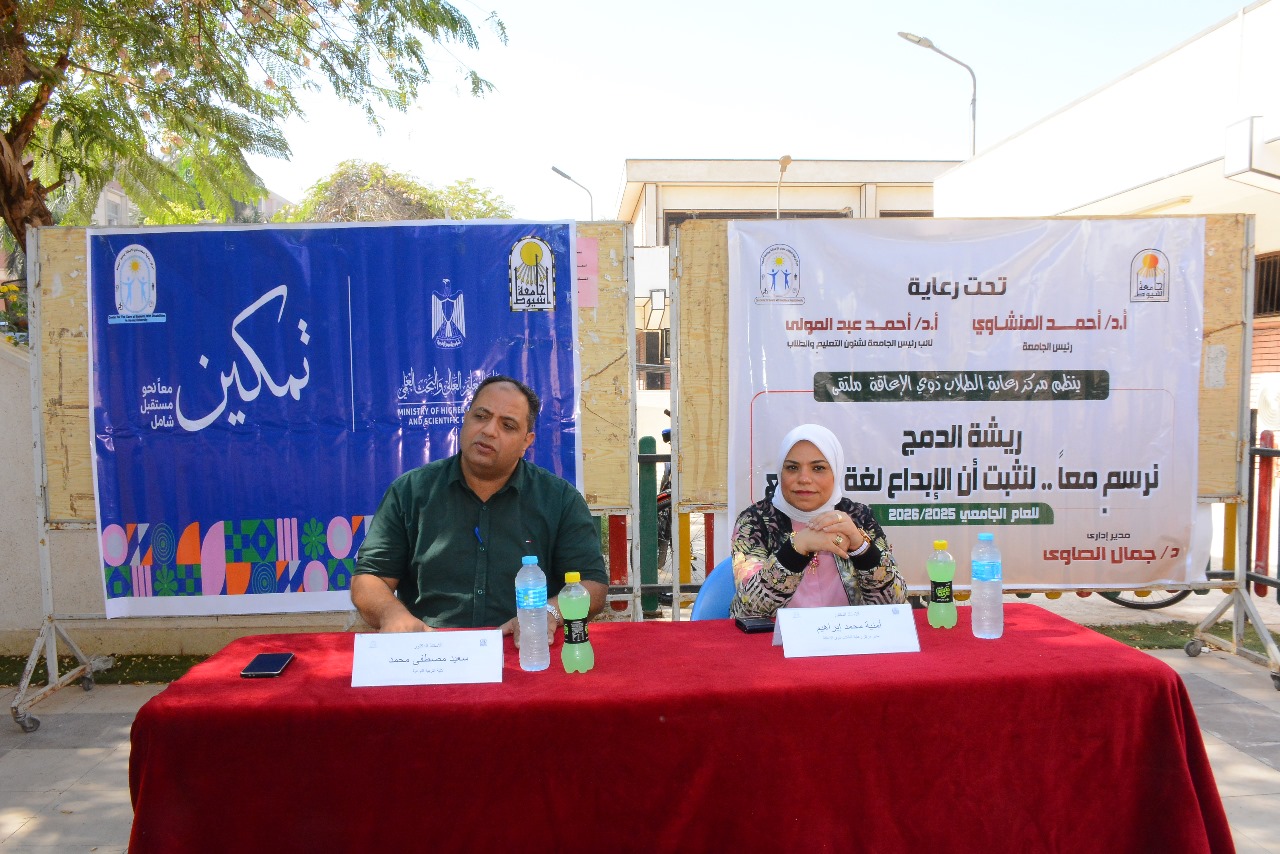 تحت إشراف الدكتور أحمد عبد المولى، نائب رئيس الجامعة لشئون التعليم والطلاب، والدكتورة أمنية عبد القادر، مدير مركز رعاية الطلاب ذوي الإعاقة، والدكتور جمال الصاوي، المدير الإداري للمركز، والدكتور محمد ياسين، منسق الأنشطة بالمركز.