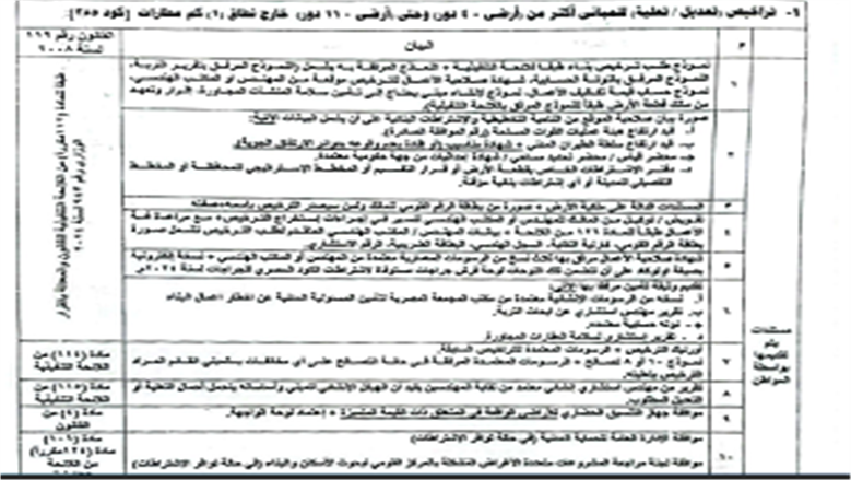 تم تحديد مجموعة من المستندات الإدارية والفنية التي يجب توافرها عند التقدم بطلب التعلية أو تعديل المباني، وجاءت على النحو التالي: