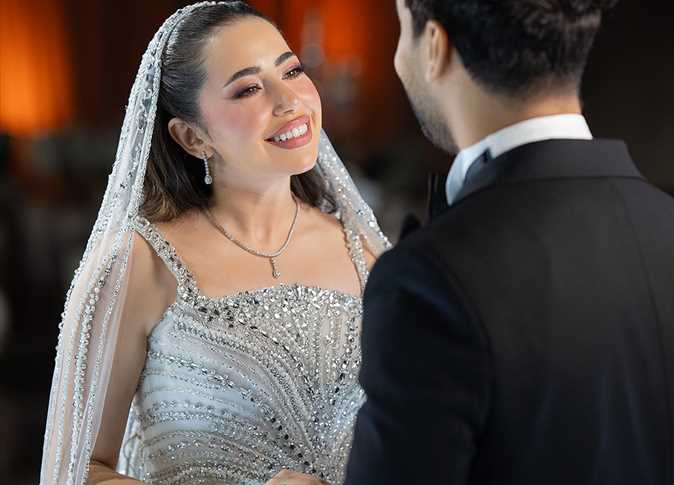 وتألقت زوجة أحمد جمال بفستان اسطورى أبيض منفوش اتسم بستايل فساتين السيندرلا و طرز بالفضى و هو ما أبرز أناقتها من تصميم سماح مهران .