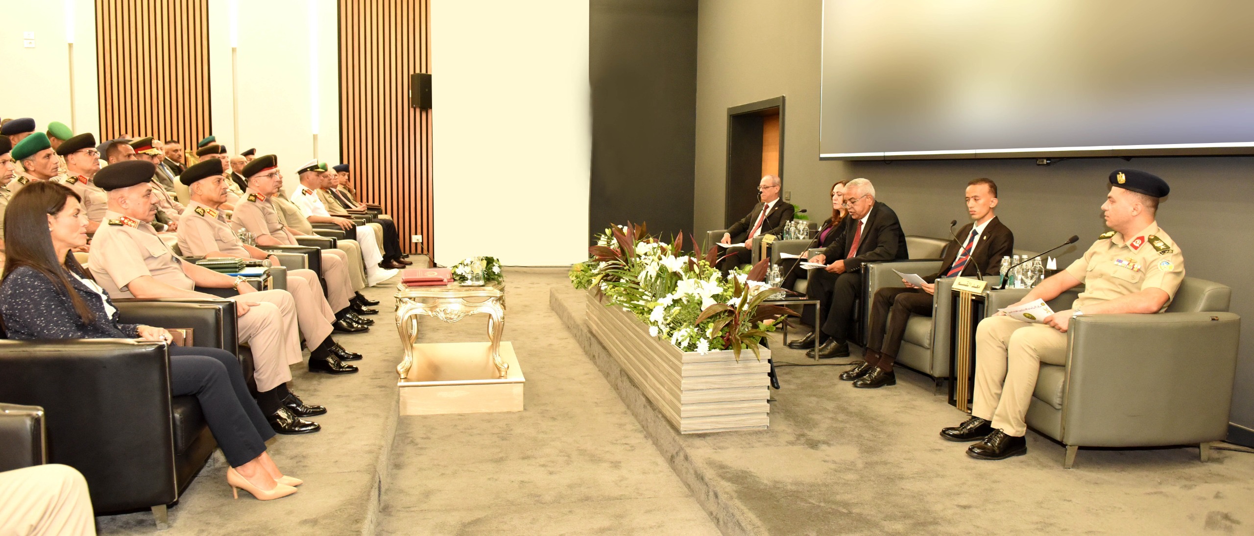 وحضر المناقشة الفريق أحمد خليفة رئيس أركان حرب القوات المسلحة والدكتورة رانيا المشاط وزيرة التخطيط والتنمية الإقتصادية والتعاون الدولى وقادة الأفرع الرئيسية وعدد من قادة القوات المسلحة والخبراءالإستراتيجيين والشخصيات العامة والإعلاميين .