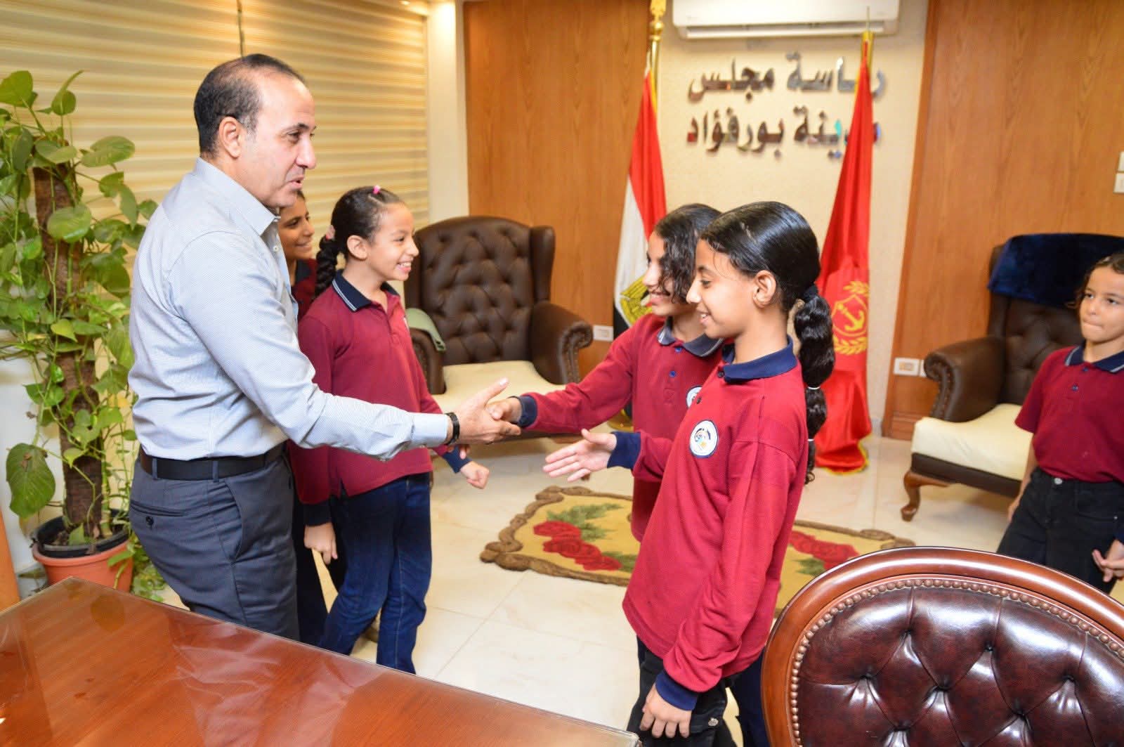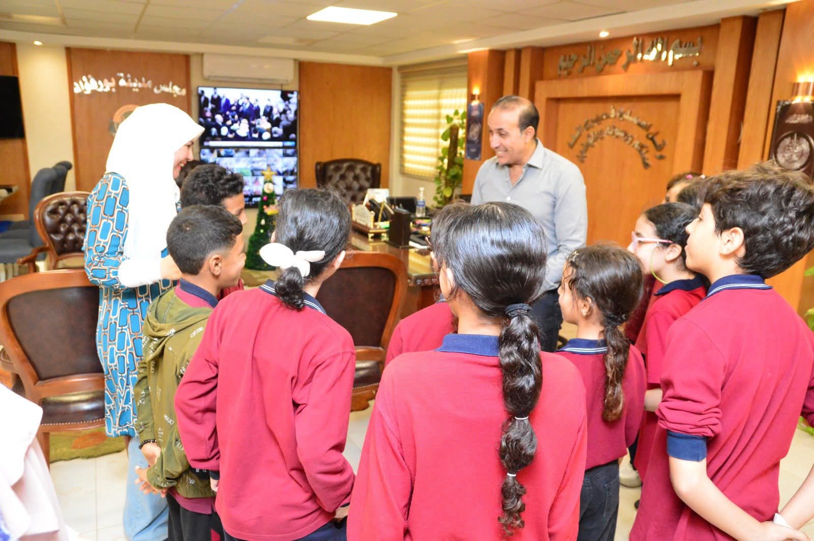 رئيس مدينة بورفؤاد يصطحب طلاب مدرسة السيدة خديجة لتفقد المركز التكنولوجي المتطور