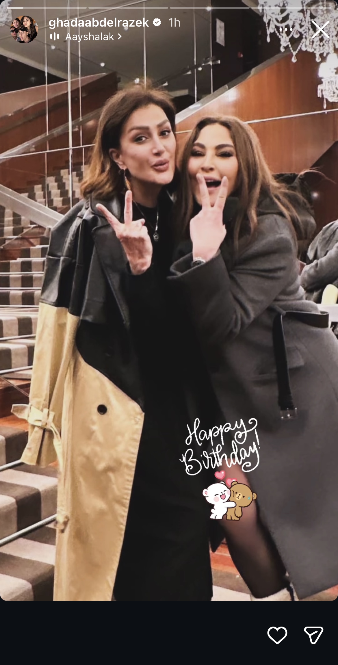 حرصت الفنانة غادة عبد الرازق، على تهنئة اللبنانية إليسا بمناسبة عيد ميلادها.
