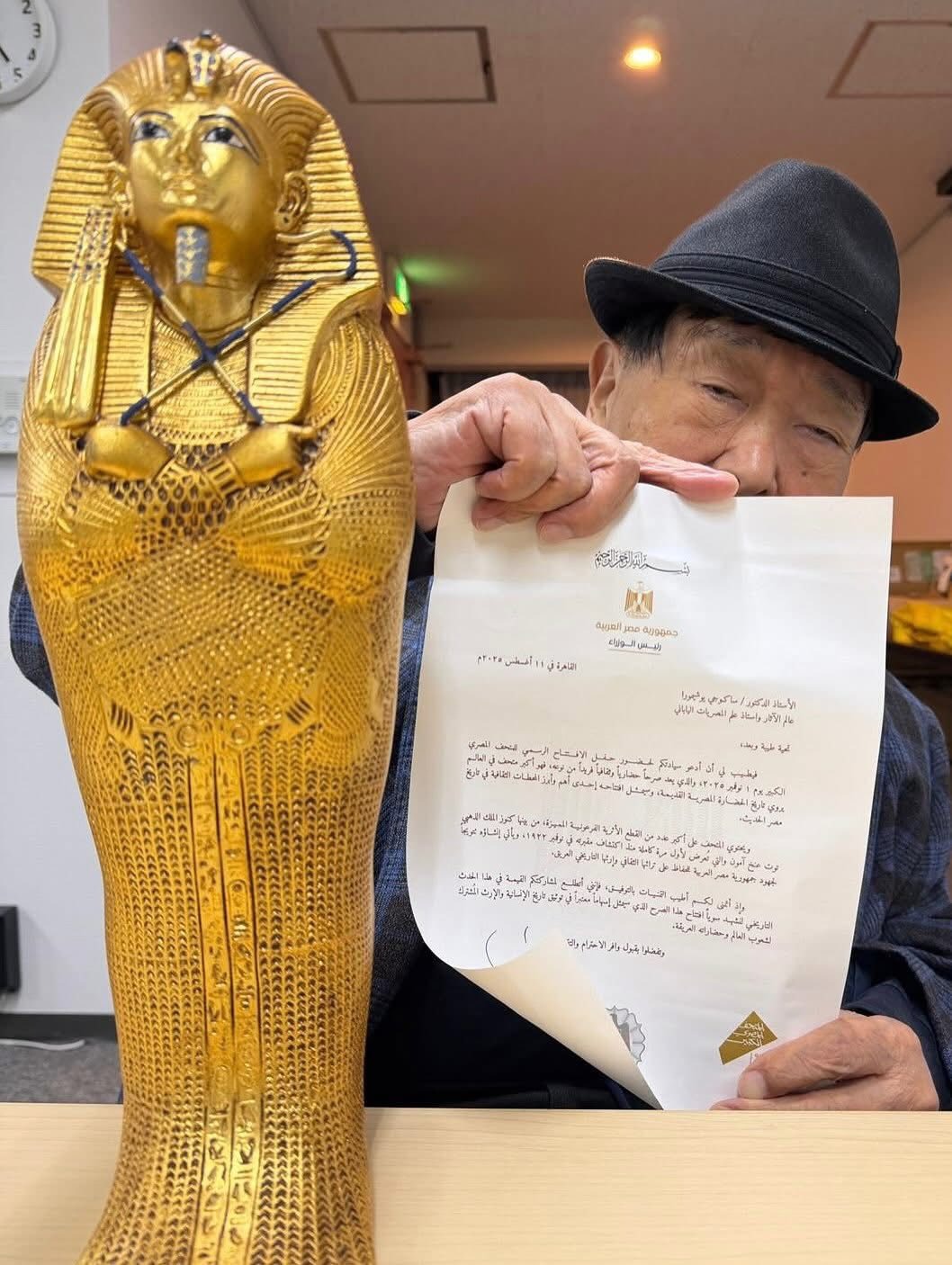 "يطيب لي أن أدعو سيادتكم لحضور حفل الافتتاح الرسمي للمتحف المصري الكبير يوم 1 نوفمبر 2025 الذى يعد صرحاً حضارياً وثقافياً فريداً من نوعه، فهو أكبر متحف في العالم ويروي تاريخ الحضارة المصرية القديمة، وسيمثل افتتاحه إحدى أهم وأبرز المحطات الثقافية في تاريخ مصر الحديث.