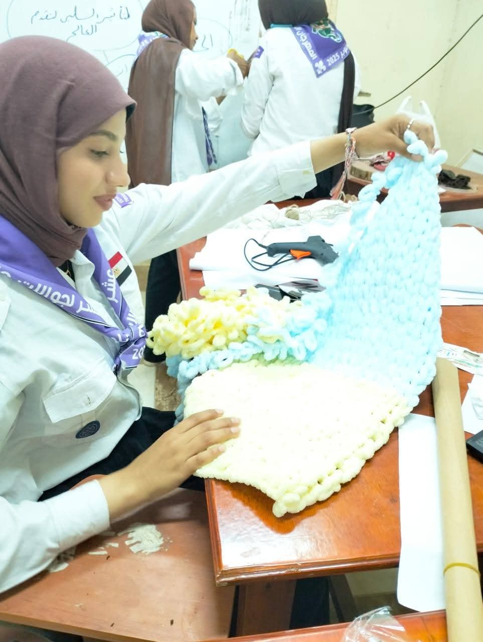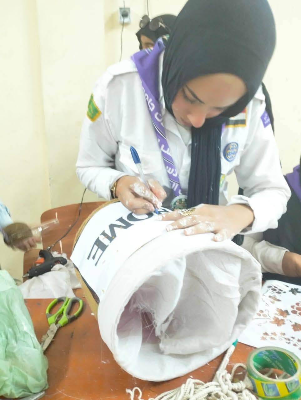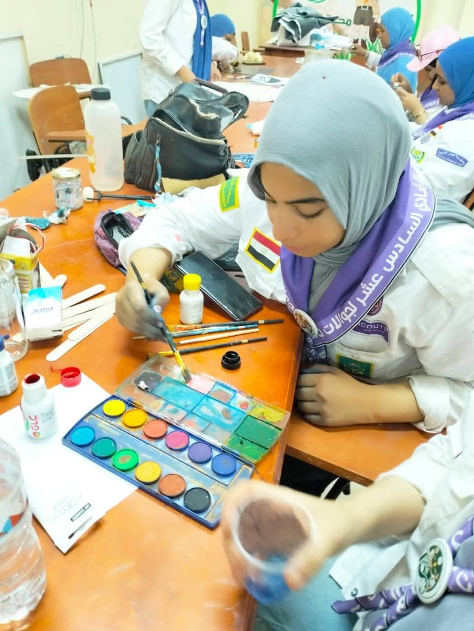 وتهدف الدورة لتنمية وصقل مهارات الجوالات من خلال التدريب على مهارات الرسم علي الزجاج واشغال الإبرة وتدوير مخالفات البيئة وأعمال الحبال والرسم علي الجلد