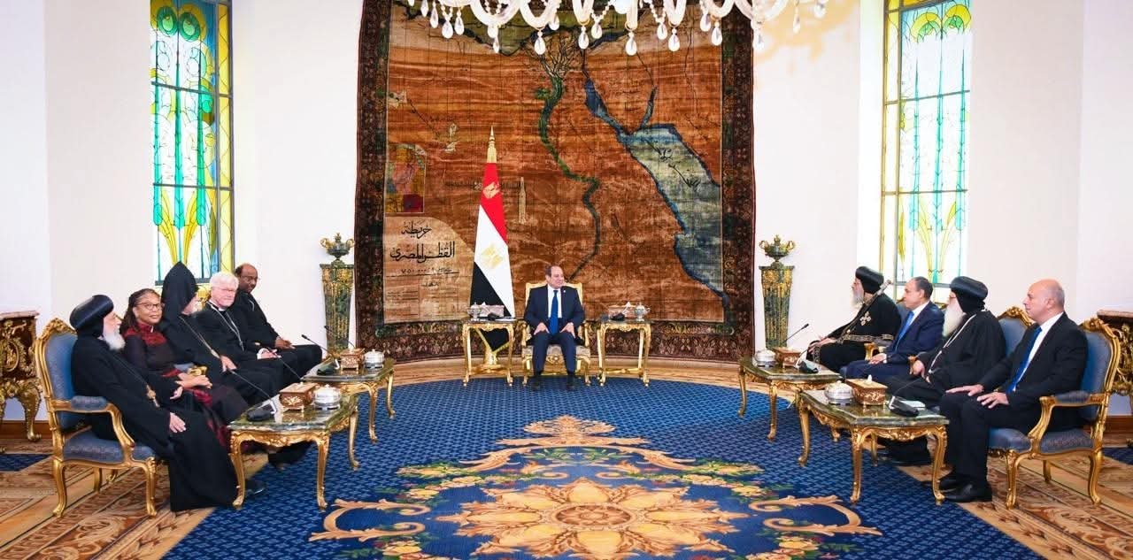 ورحّب الرئيس بالوفد الزائر، معربًا عن تهنئته بنجاح المؤتمر السادس لمجلس الكنائس العالمي، الذي استضافته الكنيسة القبطية الأرثوذكسية في مركز لوجوس بوادي النطرون، مؤكدًا أن انعقاد المؤتمر في مصر، ولأول مرة في أفريقيا وآسيا منذ عام ١٩٢٧، يحمل دلالات عميقة على مكانة مصر الروحية والتاريخية.