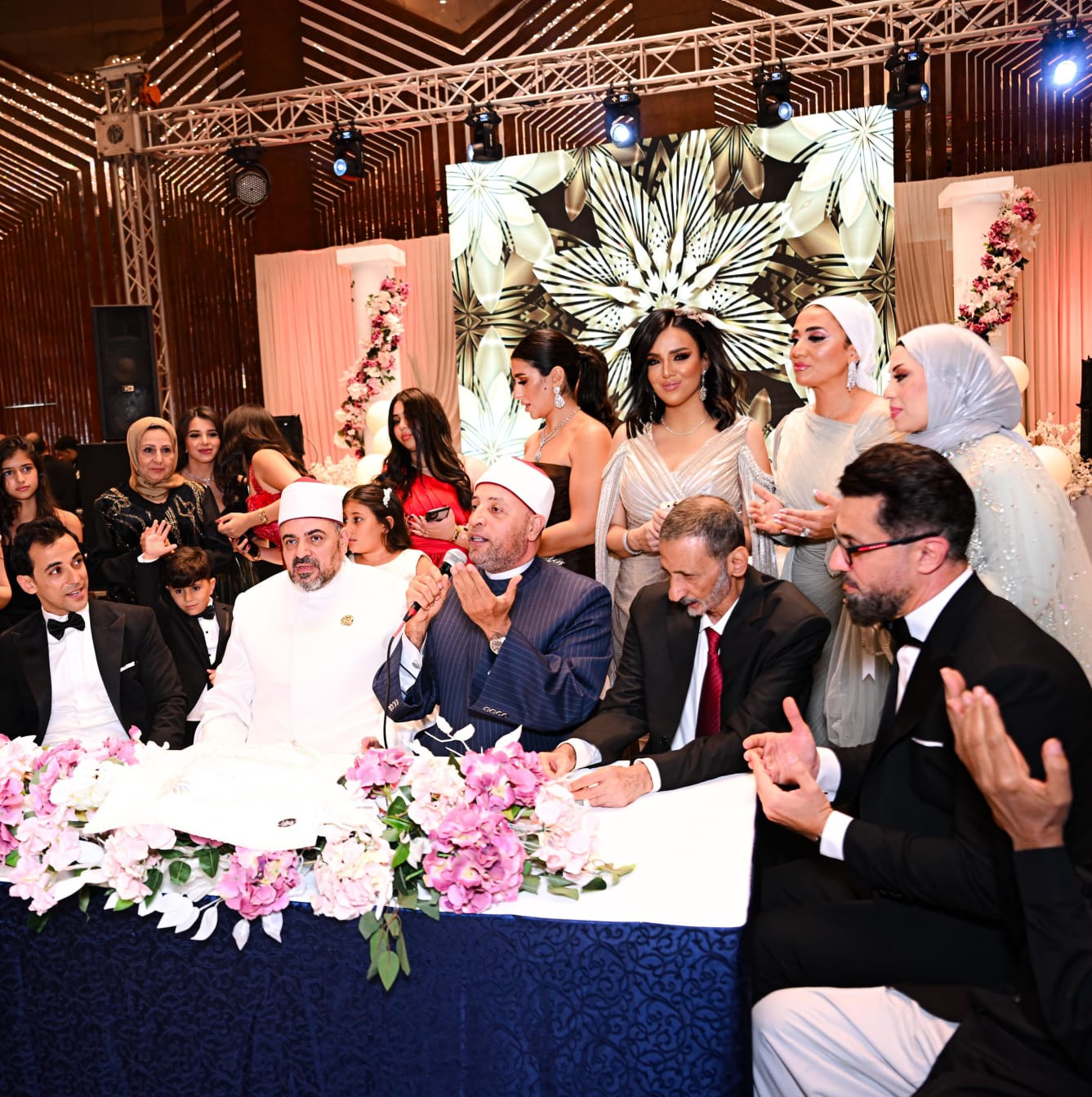 أُقيم عقد القران على يد الشيخ الدكتور رمضان عبد الرازق، وسط أجواء مفعمة بالبهجة والسعادة، واقتصر الحضور على أسرتي العروسين وعدد من الأصدقاء المقربين.