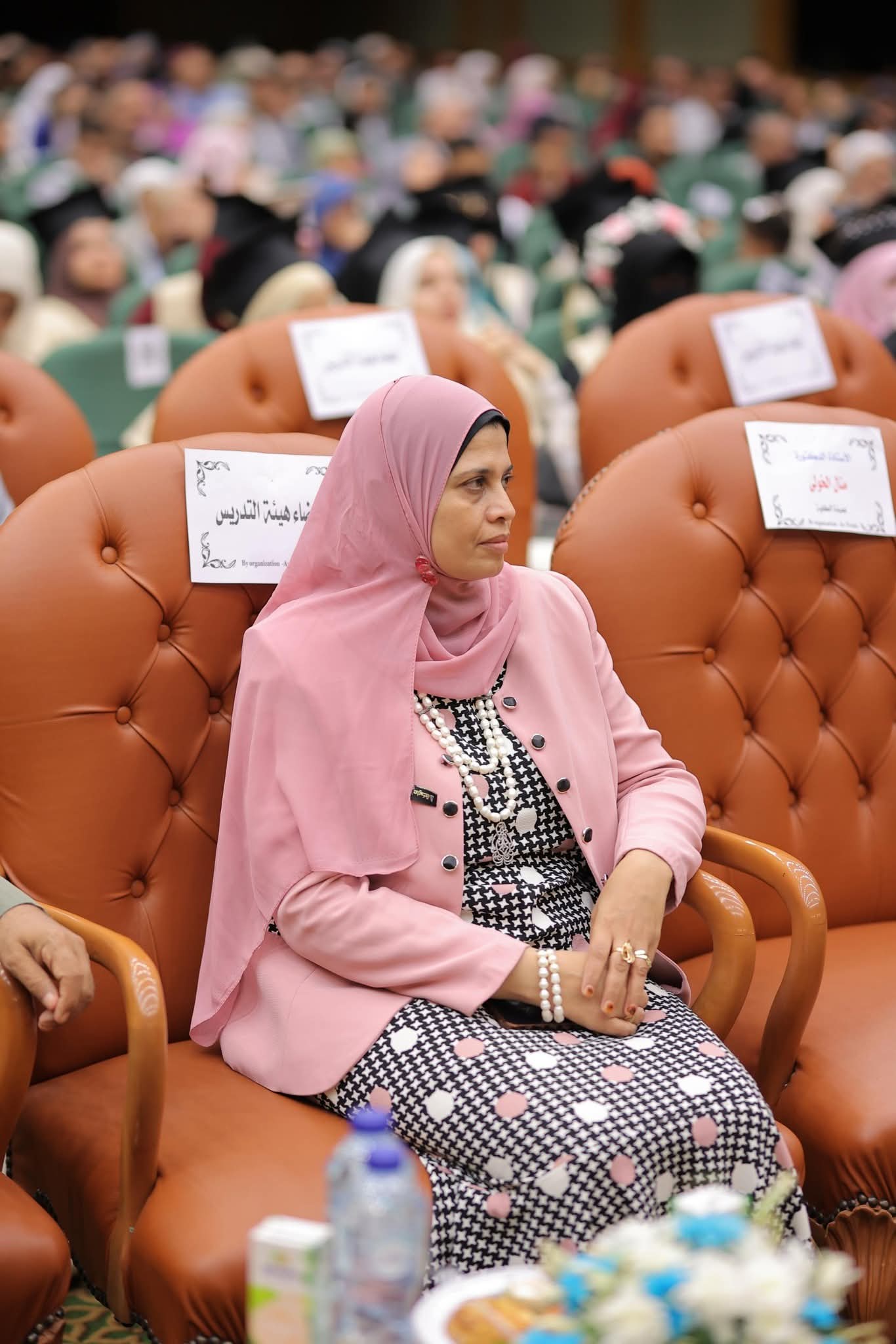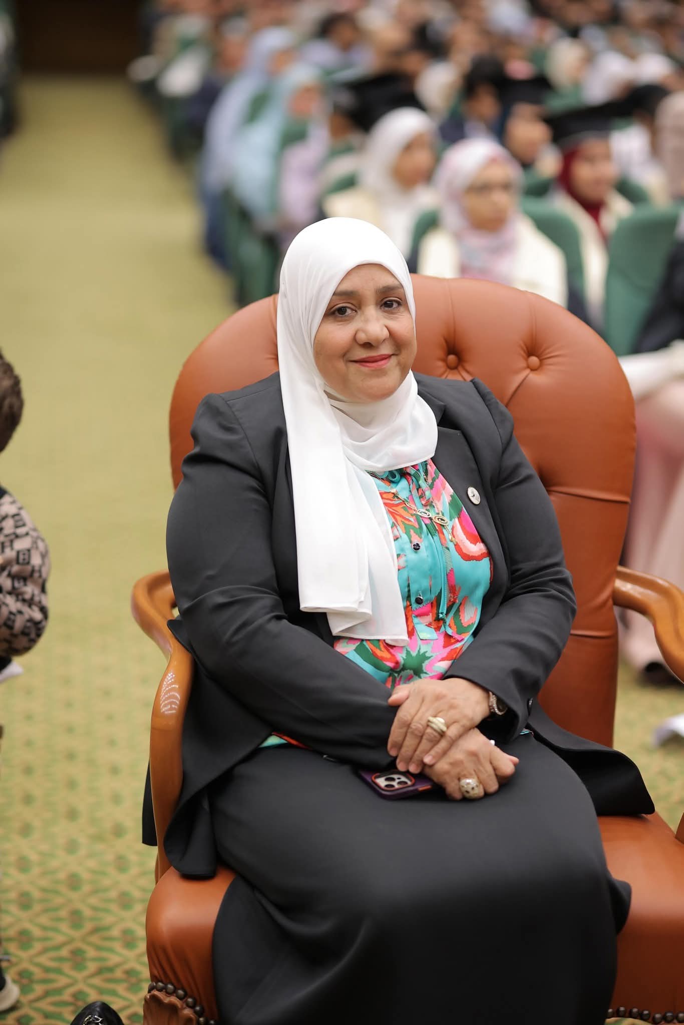 ورحبت ترحيبًا خاصًّا بأهالي الخريجات، وقدمت لهم الشكر لجهدهم المبذول مع الطالبات طوال سنوات الدراسة؛ قائلة لهم: أنتم شركاء النجاح، ولكم الدور الأساسي والداعم حتى وصلنا إلى هذا المشهد الرائع، حيث نحصد اليوم ثمار جهود السنوات الماضية.