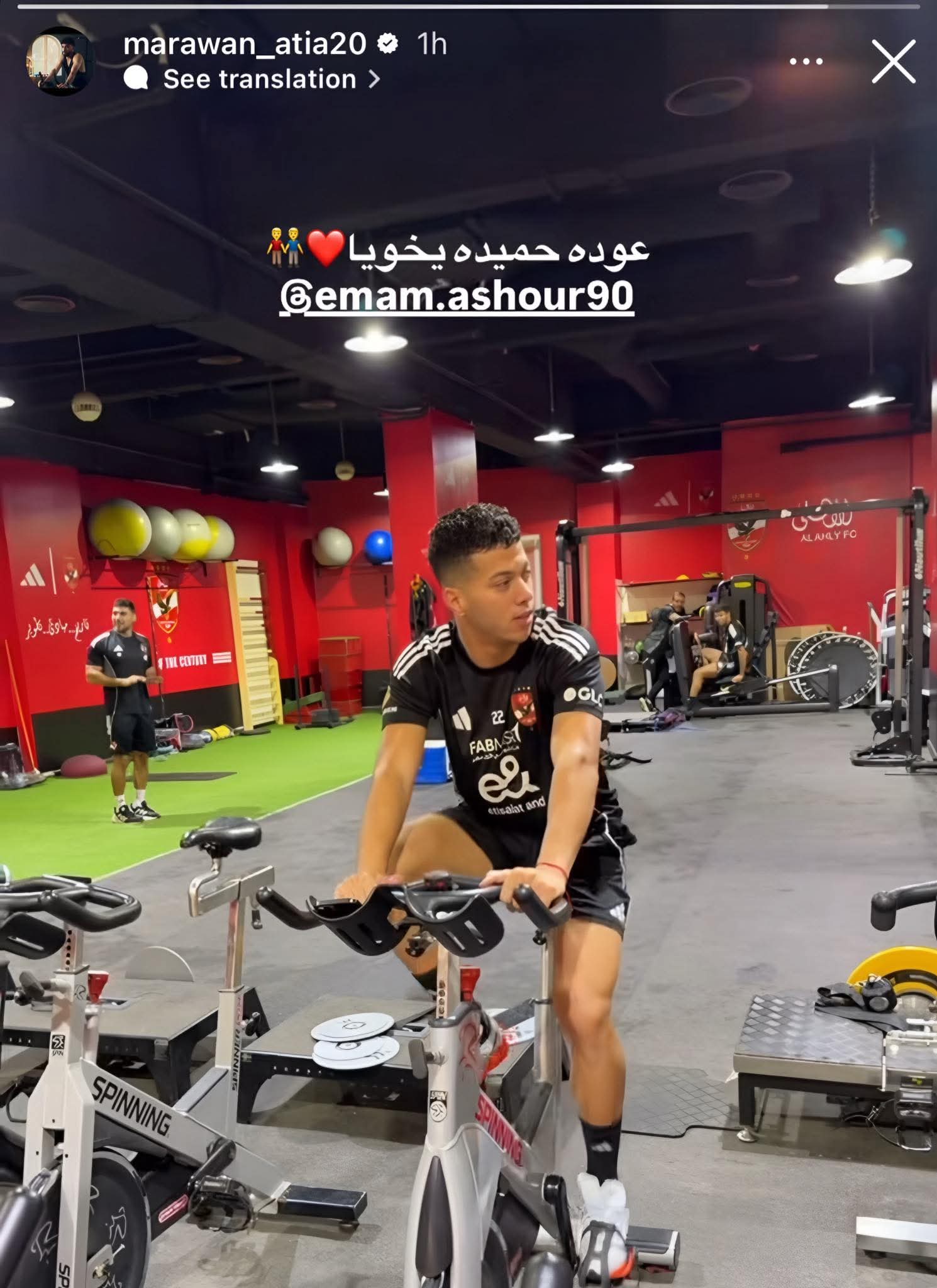 نشر مروان عطية مقطع فيديو لإمام عاشور وهو داخل إحدى صالات الجيم عبر حسابه الشخصي انستجرام.