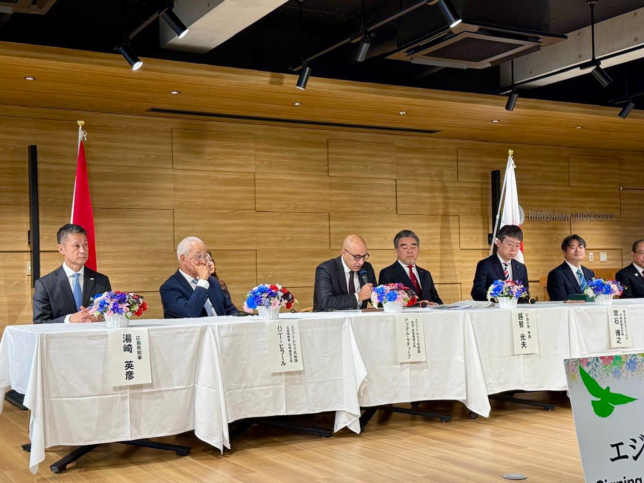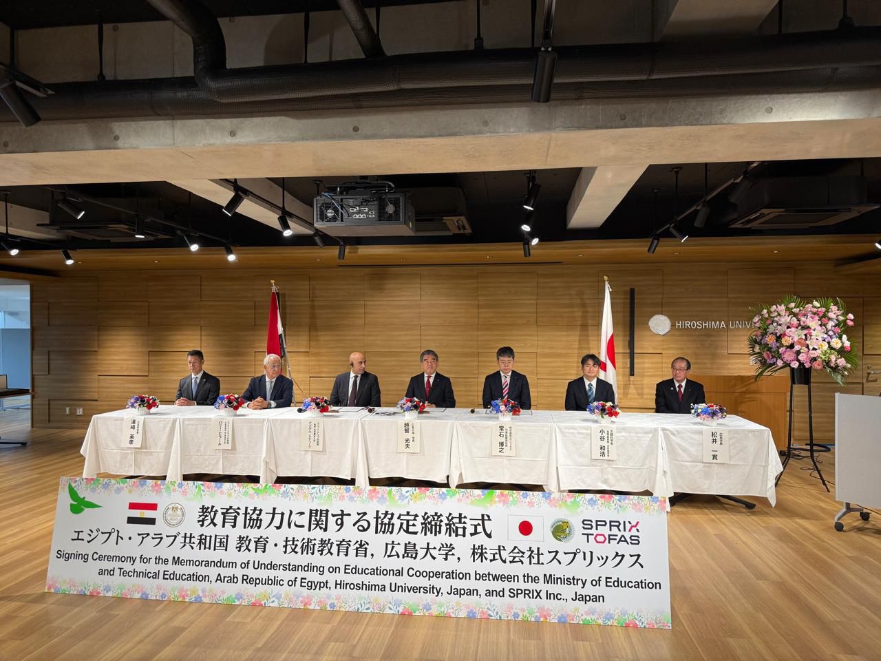 وقد وقع الاتفاق من جانب جامعة هيروشيما الحكومية اليابانية ميتسو أوتشي رئيس الجامعة، كما وقع من جانب مؤسسة "سبريكس" الرئيس التنفيذي للمؤسسة تسوني ايشي، بحضور الدكتور هاني هلال الأمين العام للشراكة المصرية اليابانية للتعليم.