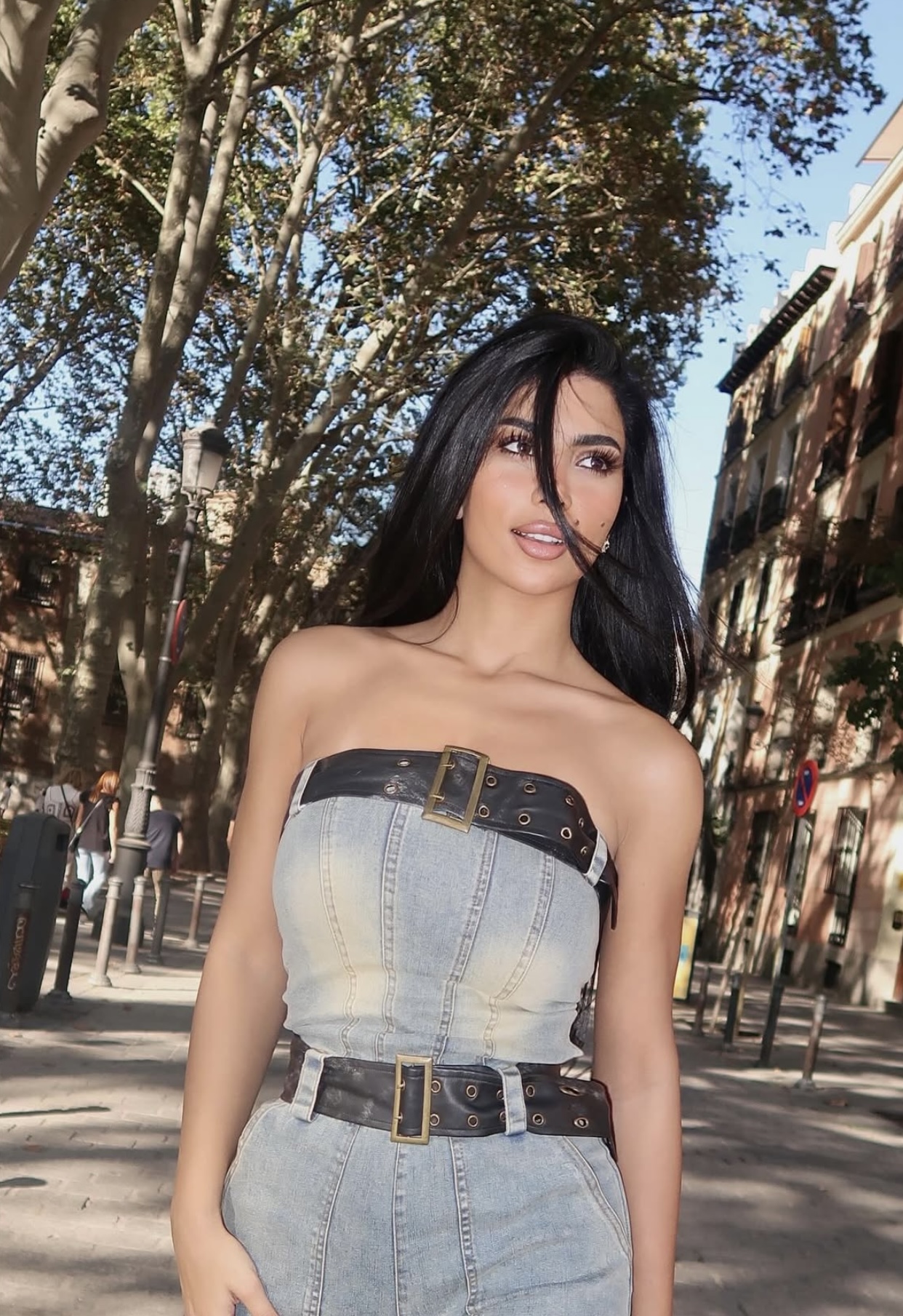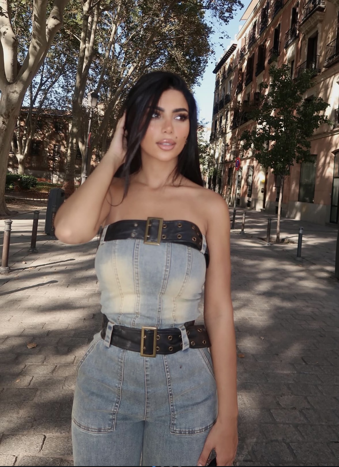 لفتت الفنانة كارولين عزمي الأنظار بإطلالة أنيقة وجريئة خلال أحدث ظهور لها، حيث اعتمدت جمبسوت من قماش الجينز مكشوف الكتفين، تميز بتصميم عصري مزيّن بحزامين من الجلد الأسود أضفى لمسة من الجرأة على اللوك.