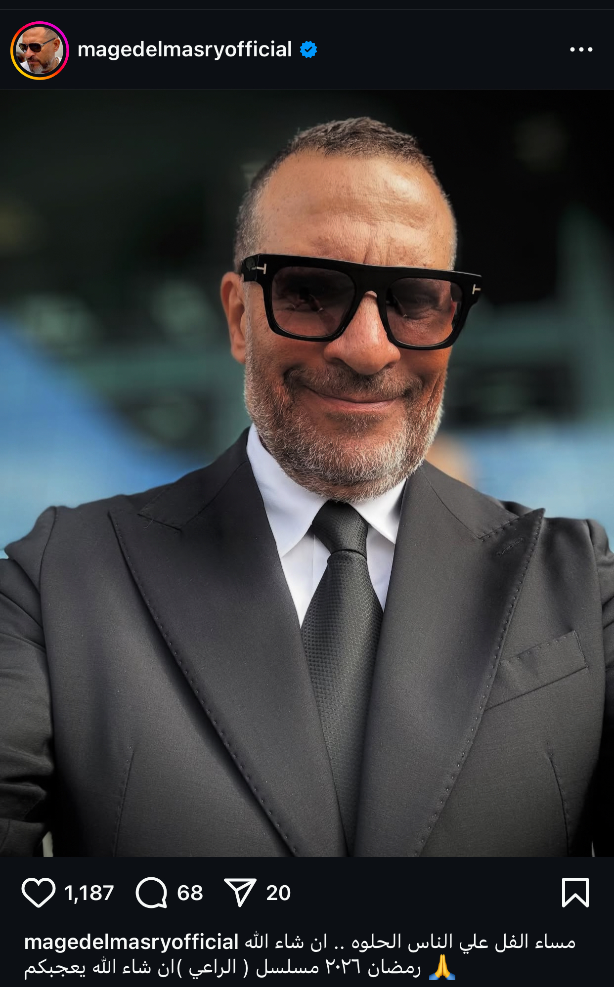 وكتب ماجد المصري عبر حسابه الشخصي بموقع إنستجرام: "مساء الفل على الناس الحلوة.. إن شاء الله رمضان 2026 مسلسل "الراعي" إن شاء اللّه يعجبكم".
