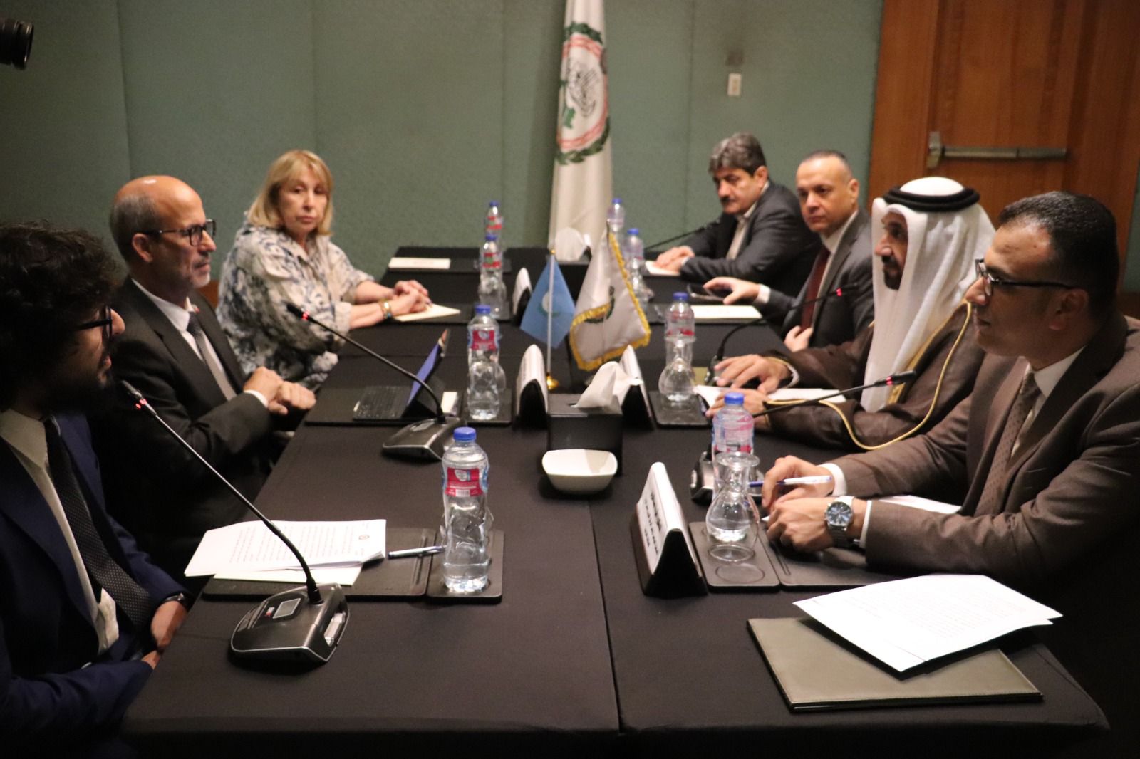 واستعرض الجانبان خلال اللقاء مسيرة التعاون بين المنظمتين في ضوء مذكرة التعاون الموقعة بين البرلمان العربي وبرلمان أمريكا اللاتينية في شهر يوليو الماضي على هامش المشاركة في المؤتمر العالمي السادس لرؤساء البرلمانات في جنيف.
