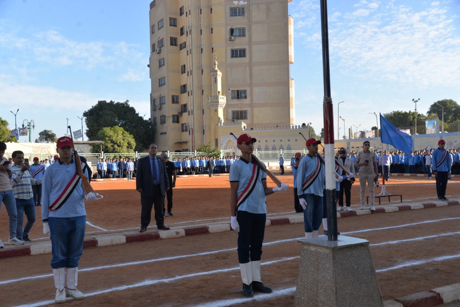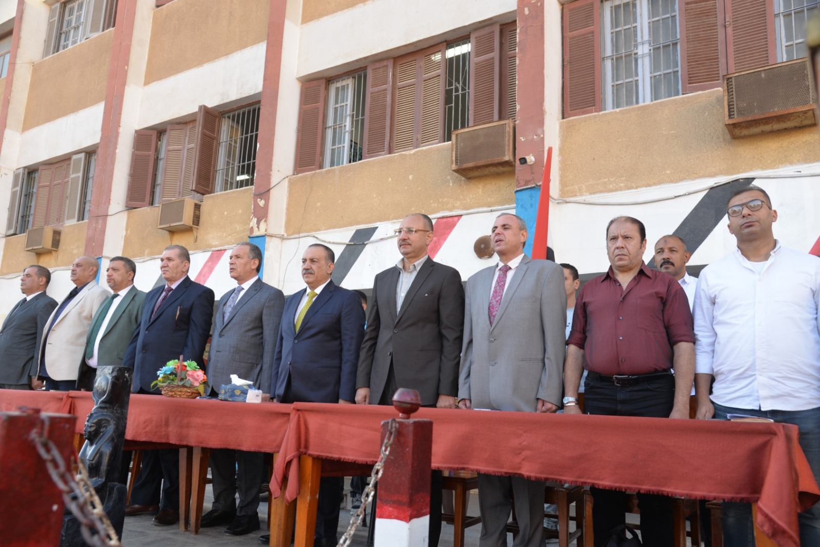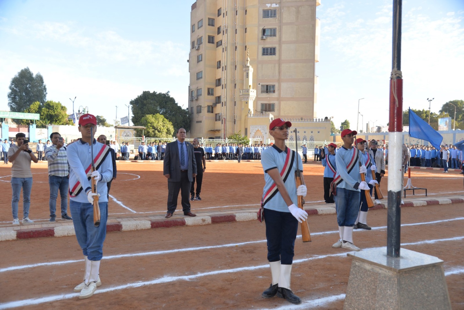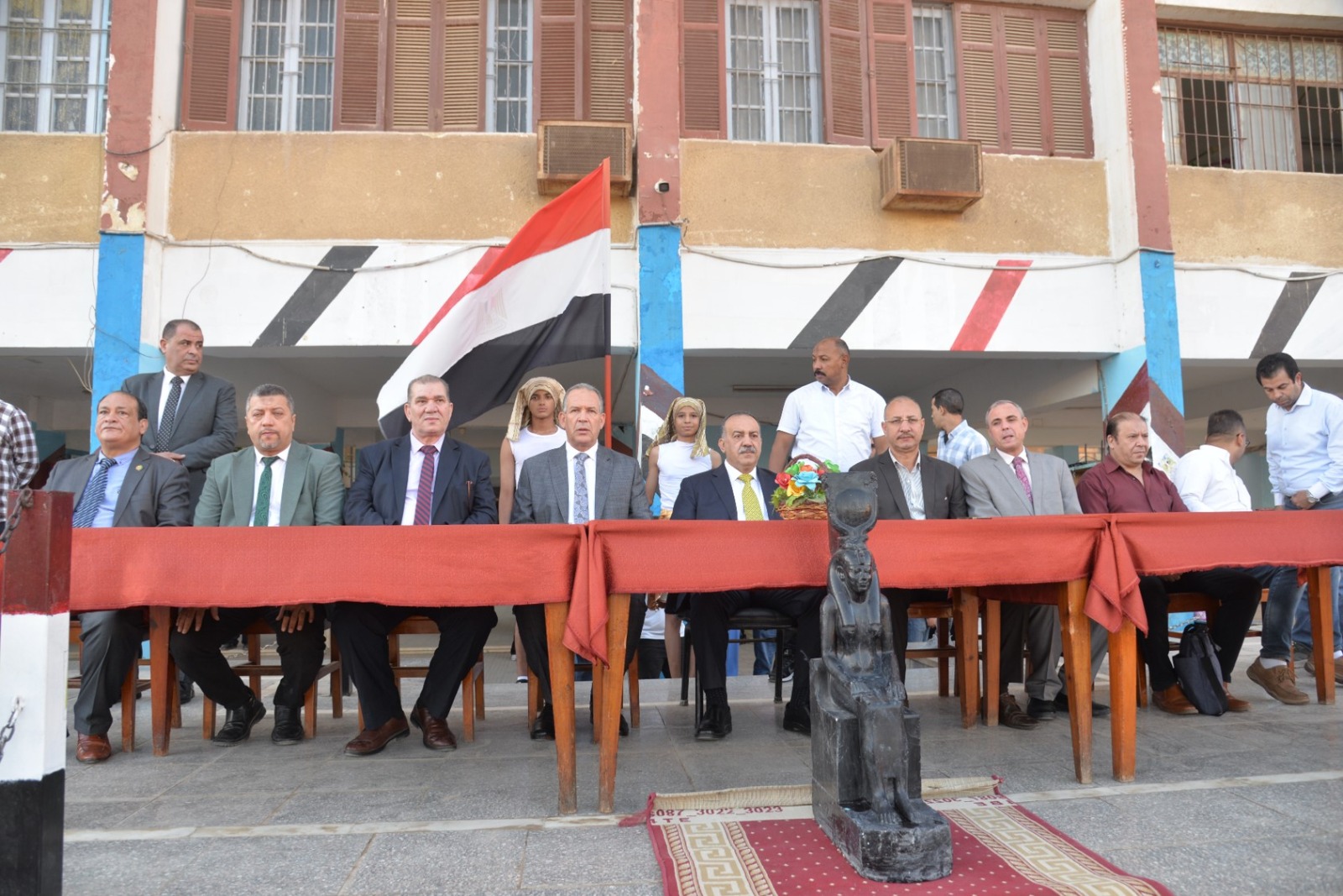 جاء ذلك بحضور محمد إبراهيم دسوقي وكيل وزارة التربية والتعليم بأسيوط، وعيون إبراهيم رئيس حي شرق أسيوط، وطارق الدسوقي مدير إدارة أسيوط التعليمية، وأحمد حسين وكيل إدارة أسيوط التعليمية، وعامري كامل مدير مدرسة ناصر الثانوية العسكرية، ووائل محمود مهني نائب رئيس مجلس أمناء مدرسة ناصر الثانوية العسكرية، وعدد من القيادات التعليمية والتنفيذية، وسط أجواء وطنية سادتها مشاعر الفخر والانتماء بالحضارة المصرية العريقة.