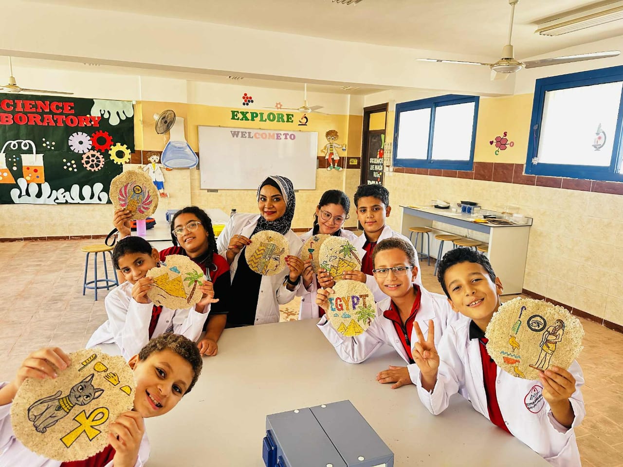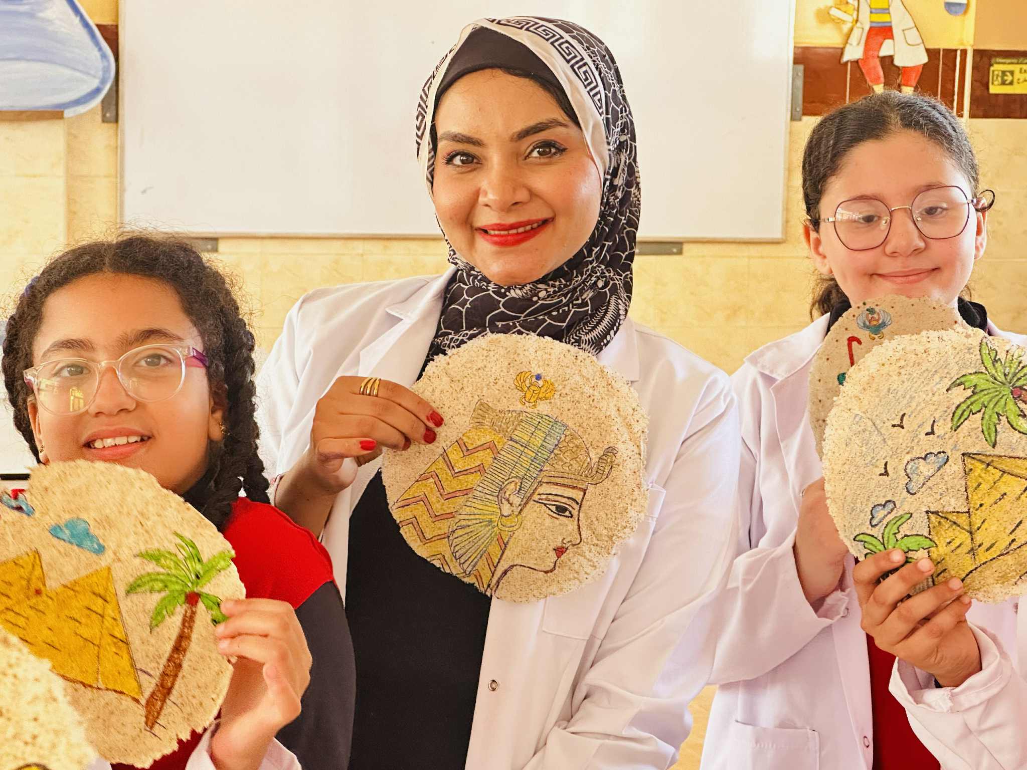 وأشارت خاطر إلى أن الطلاب قاموا بعد ذلك بتصميم رسومات فرعونية جميلة تعكس روح الحضارة المصرية العريقة.