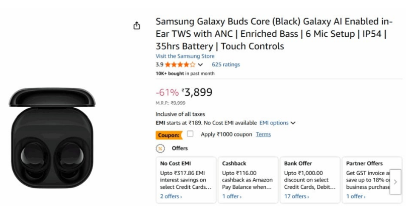 لا تفوت هذه الفرصة لامتلاك سماعة أذن سامسونج بسعرٍ فعليّ قدره 2,899 روبية هندية.
