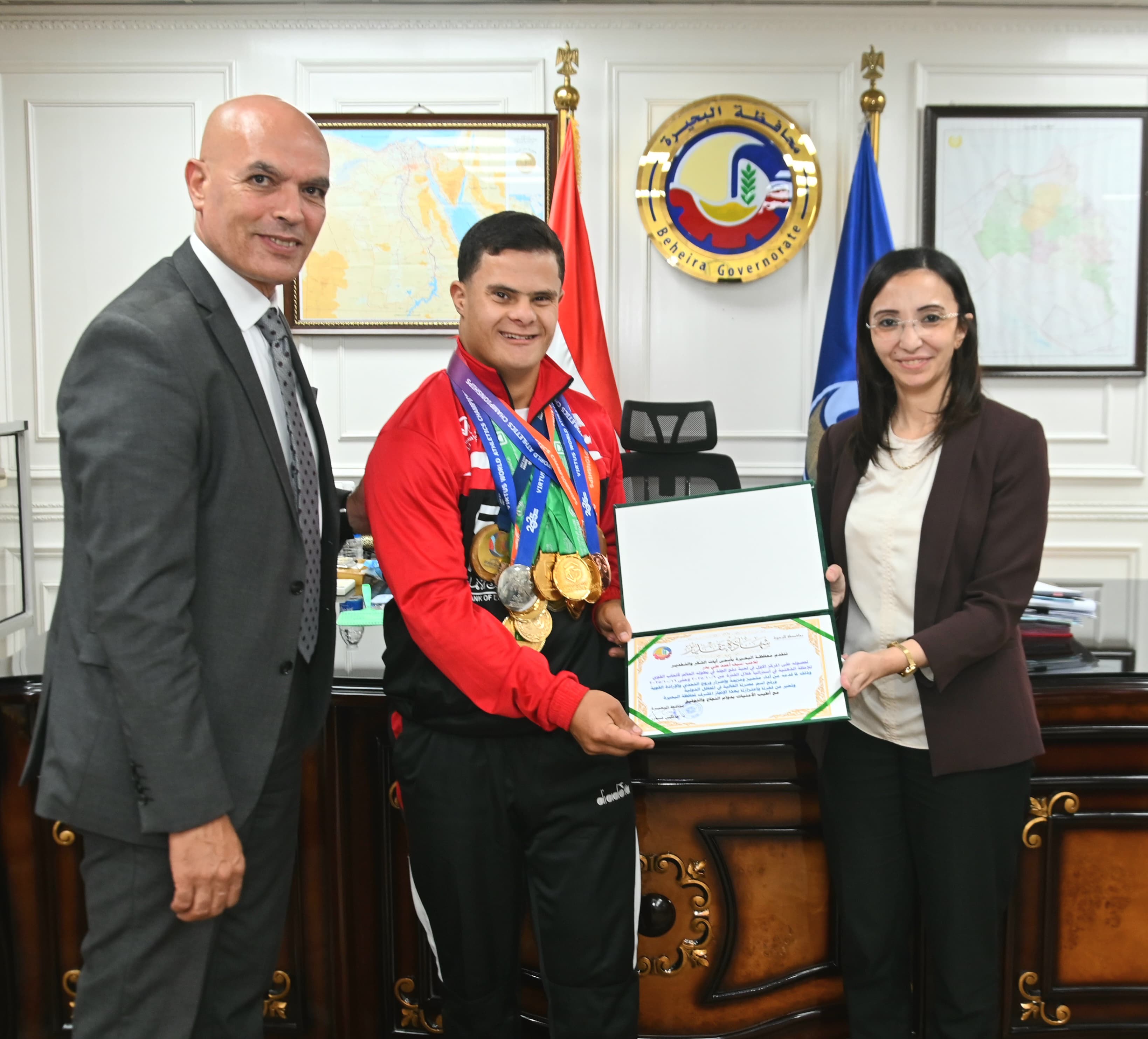 كرّمت الدكتورة جاكلين عازر محافظ البحيرة، أبطال العالم من أبناء المحافظة المشاركين في بطولة العالم لألعاب القوى لذوي الإعاقة الذهنية، والتي أُقيمت بدولة أستراليا خلال الفترة من 6 إلى 16 أكتوبر الجاري، تقديرًا لما حققوه من نتائج متميزة رفعوا بها اسم مصر عاليًا في المحافل الدولية.