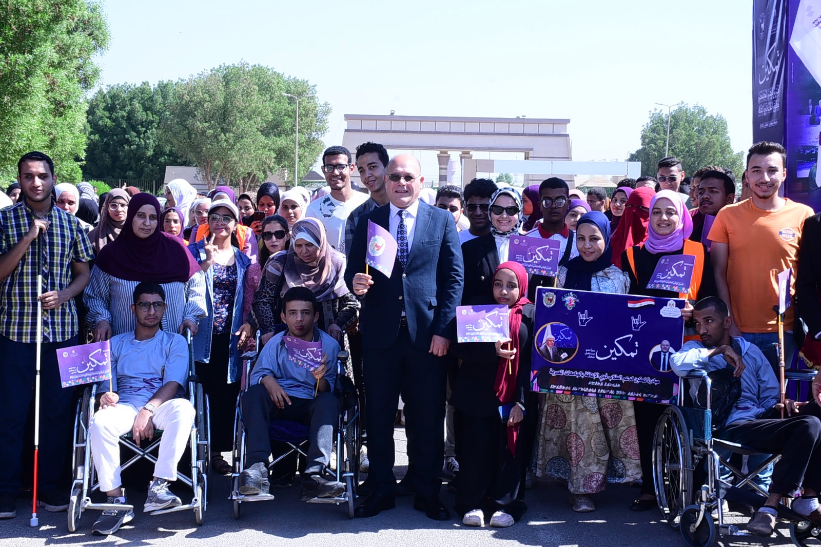 والدكتور أيمن عاشور وزير التعليم العالي والبحث العلمي، لتعزيز الوعي المجتمعي بحقوق الأشخاص ذوي الإعاقة، بحضور كلا من الدكتور خالد عمران والدكتور حسين طه نواب رئيس الجامعة.