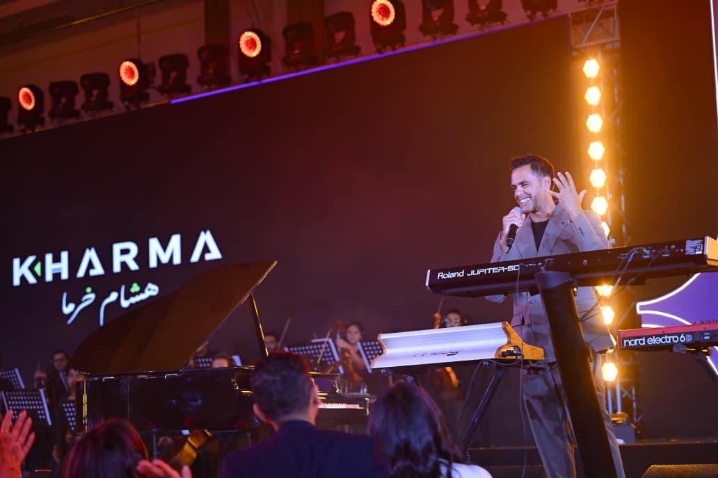 وتألق الموسيقار هشام خرما بمجموعة من أعماله الموسيقية الشهيرة التي نالت إعجاب الجمهور منها Eternal Journey وArabesque وThe Revolution وRise .. واختتم وصلته بموسيقى "حلوة بلادي" وسط المزيد من اجواء البهجة والحماسة.