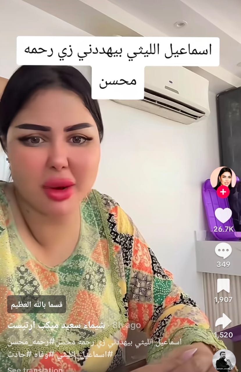 ونشرت شيماء سعيد فيديو عبر تيك توك بعنوان “إسماعيل الليثي بيهددني زى رحمة محسن” ، وقالت من خلاله: “اتفو على الرجالة ، لان الرجالة خلاص مبقتش موجودة حسبي الله ونعم الوكيل”.