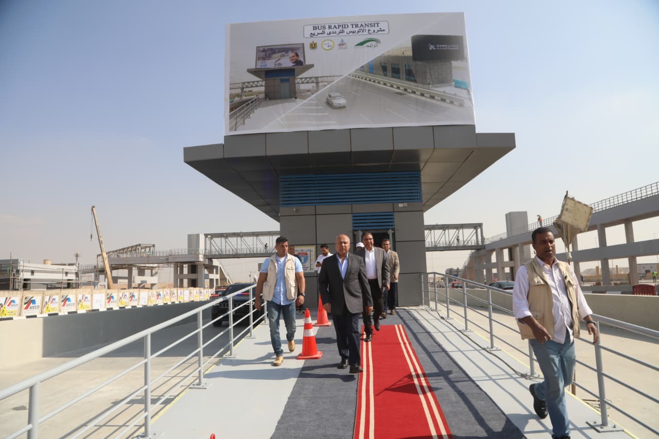 كما حرصت الهيئة علي تسارع معدلات تنفيذ محطات المرحلة الثانية للأتوبيس الترددي السريع BRT الممتدة من محطة المشير طنطاوى وحتى تقاطع الفيوم بطول 57 كم بعدد 21 محطة من اجمالي عدد محطات المشروع بالكامل بمراحله الثلاثة والبالغة 48 محطة وتم الاطمئنان على الانتهاء من الواجهات الخارجية لمحطات المرحلة الثانية وخاصة المحطات المحيطة بالمتحف بالإضافة الى تشطيب الرصف الاسفلتي والخرساني في نطاقها وحيث تتضمن محطات المرحلة الثانية من المشروع عدد 3 محطات بمحور المريوطية هي الهرم - الملك فيصل - ترسا وكذلك محطة المتحف المصرى الكبير (إسكندرية الصحراوي) وتم الاطلاع خلال الجولة على كيفية الربط بين محطات المشروع والمواقف الموجودة اسفل الطريق الدائري والتي تخدم القادمون من والى الطريق الدائري وكذلك كيفية وصول الراكب للمحطات من تلك المواقف سواء عبر كباري المشاه او الانفاق وحتى استقلال الاتوبيس الترددي بالاضافة الى استعراض اماكن الانتظار داخل المحطات وطرق الحصول على التذاكر والمرور من البوابات الالكترونية للأتوبيس.