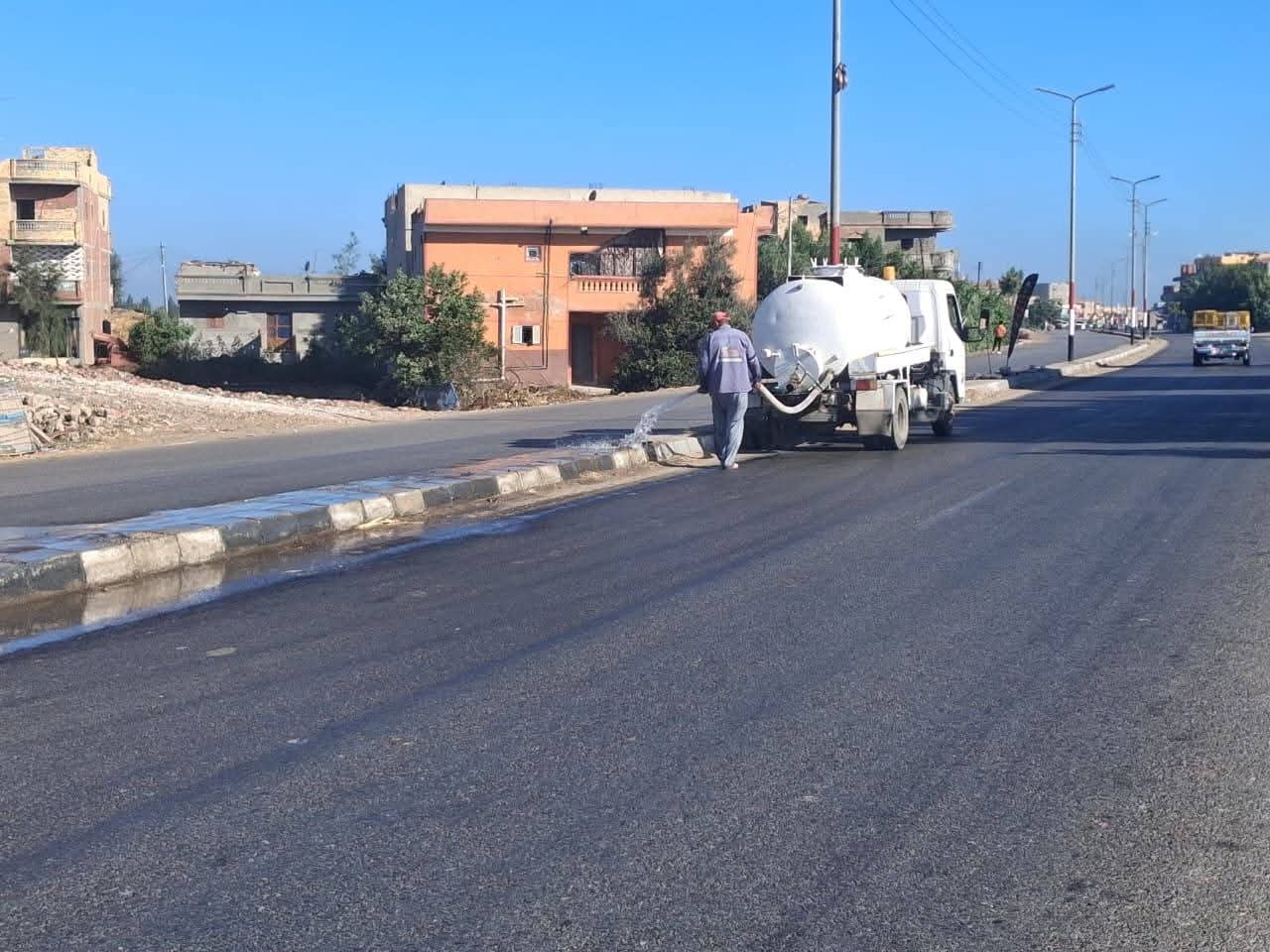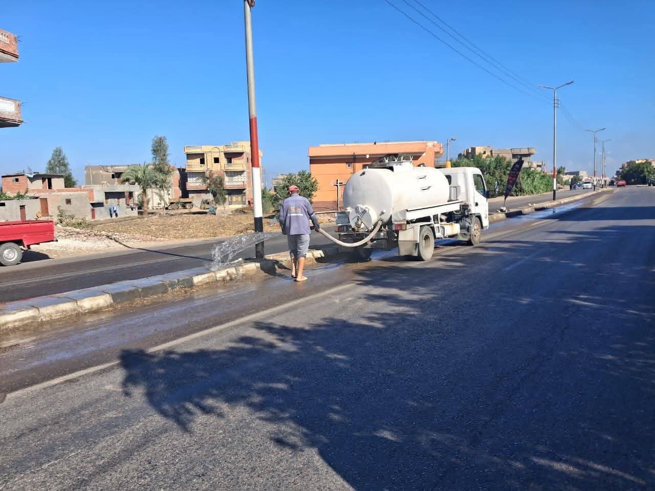 وتضمنت الأعمال غسيل وتنظيف الجزيرة الوسطى ودهان أعمدة الإنارة والبلدورات، إلى جانب رفع تراكمات الأتربة والمخلفات وتحسين مستوى النظافة بالشوارع والميادين، بما يسهم في الحفاظ على المظهر الحضاري والجمالي للمدينة والقرى التابعة لها.
