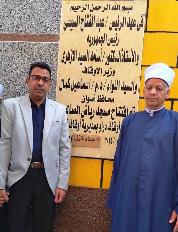 أناب اللواء الدكتور إسماعيل كمال محافظ أسوان ، رئيس الوحدة المحلية لمركز ومدينة دراو سيد سعدى ، والشيخ سمير خليل مدير مديرية الأوقاف لإفتتاح مسجد رياض الصالحين بمنطقة عمارات الخور ، والذى تم إنشاؤه بالجهود الذاتية بتكلفة بلغت 2.2 مليون جنيه بالجهود الذاتية ، وتم إقامة المسجد على مساحة إجمالية وصلت إلى 255 م2 .