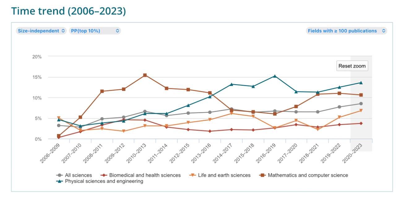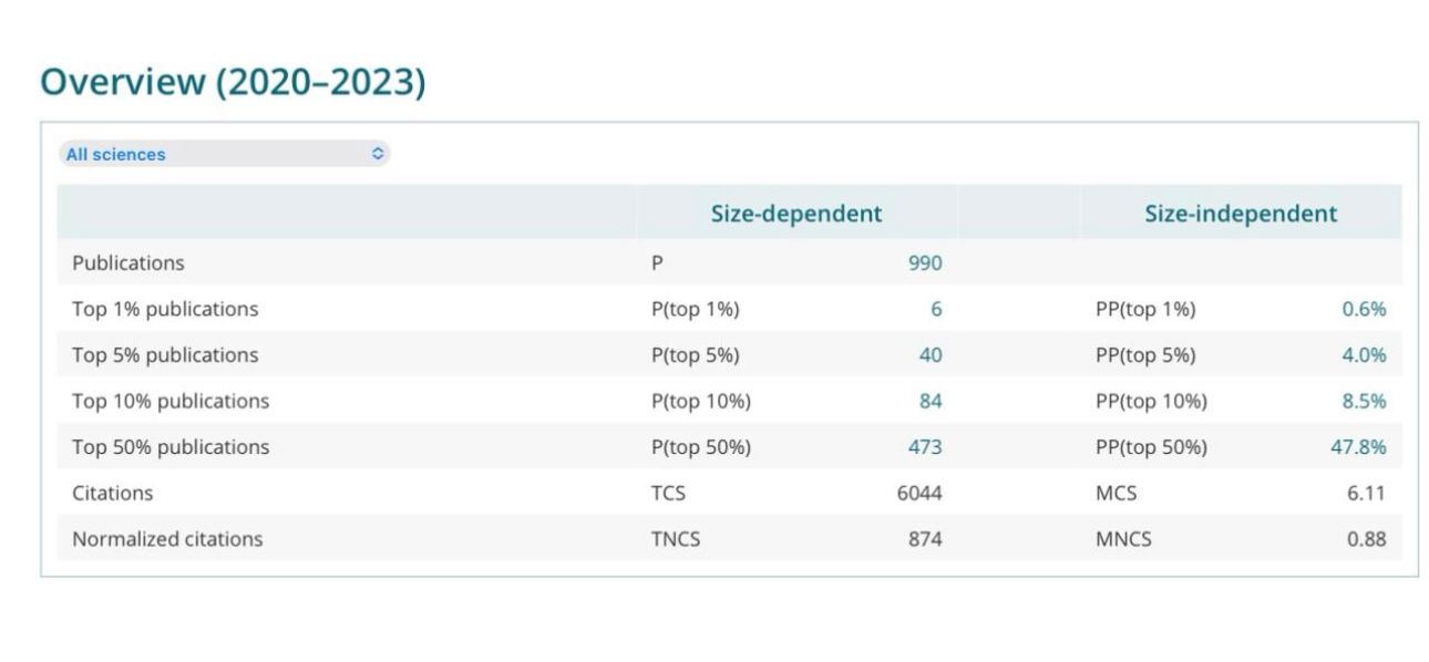 ومعدلات التعاون البحثي الدولي، ونسبة الأبحاث المنشورة بنظام الوصول الحر (Open Access)، بالإضافة إلى مؤشرات تتعلق بتنوع الباحثين وتوازن بيئة البحث العلمي داخل الجامعة.